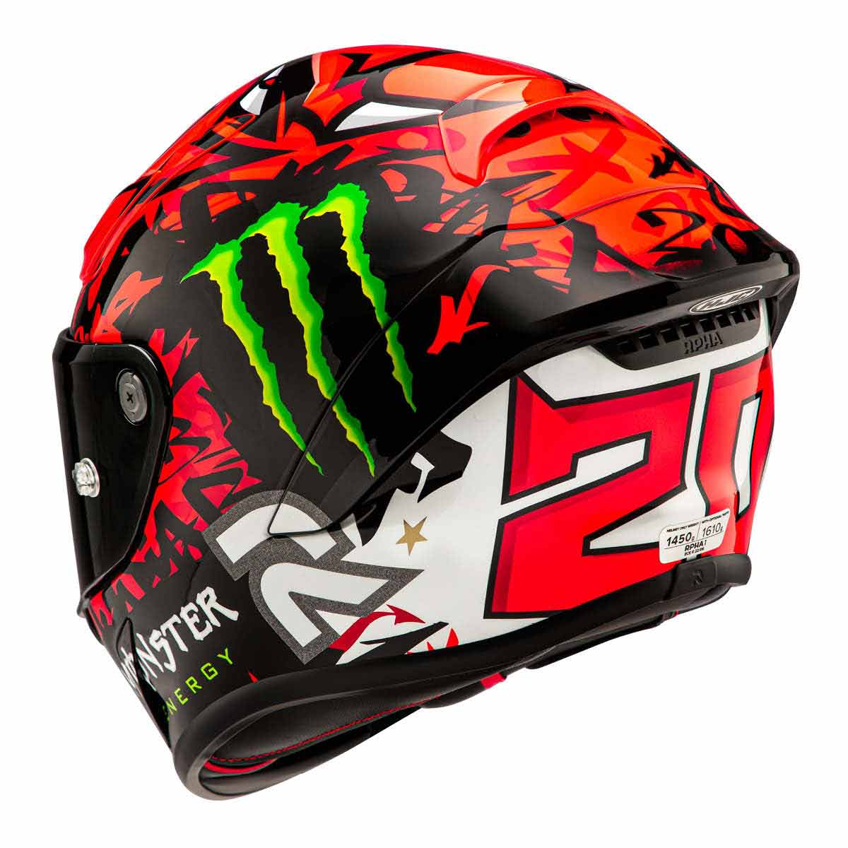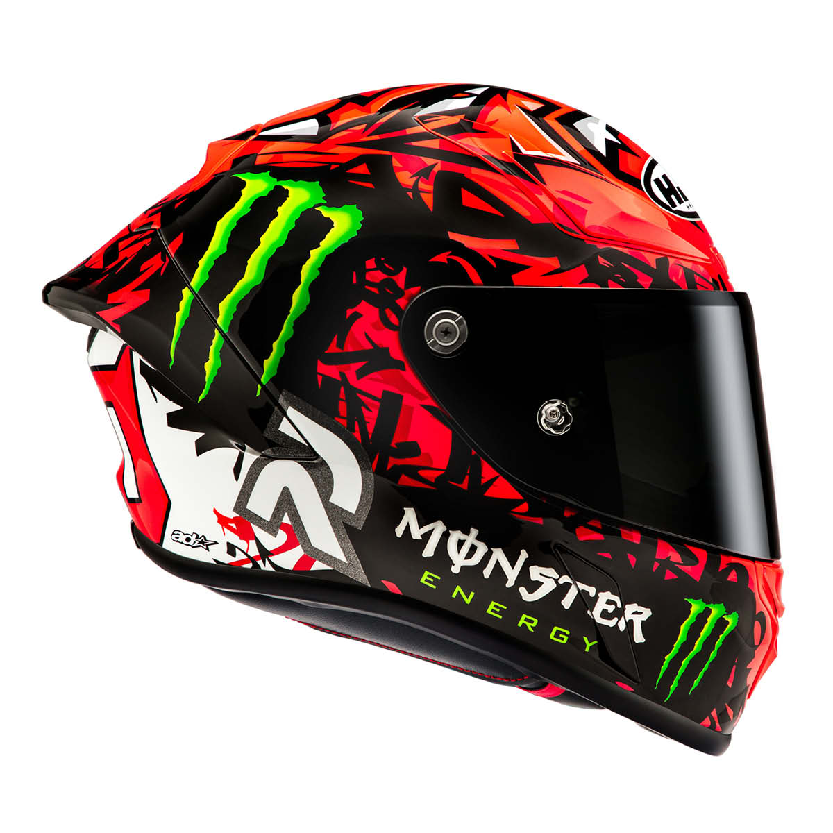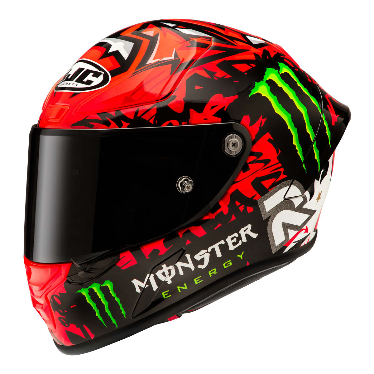 Der HJC RPHA1 ist ein aus Carbon und Carbon-Glas-Hybrid-Gewebe bestehender Integralhelm. Das aerodynamische Schalendesign sorgt für eine gute Rennperformance. Für eine gute Luftzirkulation sorgen die 5 Lufteinlässe und die 4 Luftauslässe. So kann die Wärme nach oben oder außen abgeleitet werden. Um ein sicheres Verriegeln des Visiers auch während des Renneinsatzes zu gewährend, ist der RPHA1 mit einem Visier-Doppelverschluss-System ausgestattet. Das EASY-Befestigungssystem ermöglicht einen einfachen Visierwechsel ganz ohne Werkzeug. Kopf- und Wangenpolster sind herausnehmbar und waschbar. Der Doppel-D Verschluss hält den Helm sicher geschlossen und in seiner Position. Serienmäßig ist der Helm mit einem klaren Visier ausgestattet. Durch das Emergency Kit (Wangenpolster) hilft in einer Notfallsituation für eine rasche und schnelle Versorgung. Der Helm ist ECE22.06 zertifiziert und auch FIM Racing homologiert.