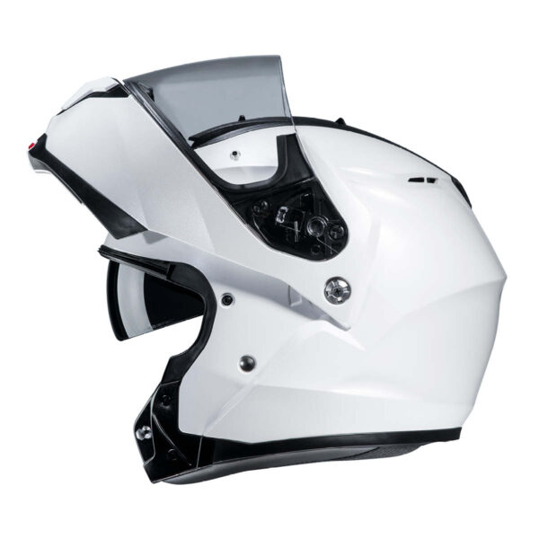 Der C91N ist das Einsteigermodell bei den Klapphelmen. Die Polycarbonat Außenschale ist leicht und hat einen hervorragenden Tragekomfort. Das ausgeklügelte Belüftungssystem leitet Hitze und Feuchtigkeit nach oben und außen ab. Einfaches, schnelles und werkzeugfreies Visierwechseln wird durch das RapidFire System garantiert. Die innenliegende, integrierte Sonnenblende lässt sich schnell und einfach über den Hebel bedienen. Kopfpolster und Wangenpolster sind herausnehmbar und waschbar. Ebenso ist der C91N für ein SMART HJC Kommunikationssystem vorbereitet, welches optional erworben werden kann. ECE 22.06 geprüft.