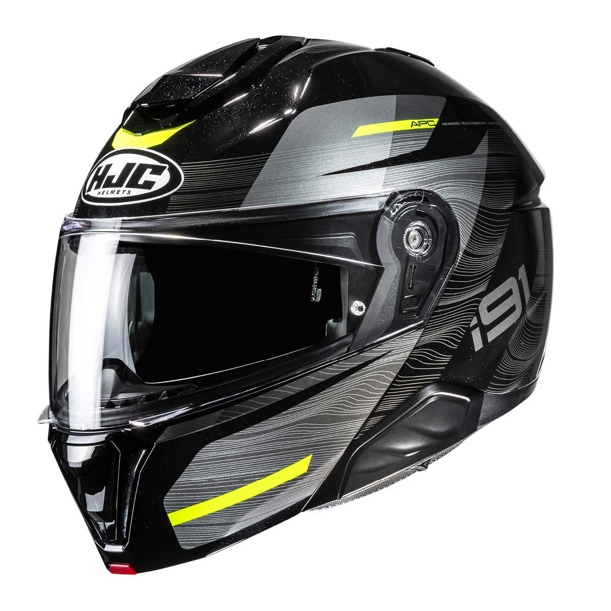 Der i91 ist ein Klapphelm mit doppelter Homologation, was bedeutet, dass der Helm als Integral- oder Jethelm gefahren werden kann. Die Außenschale ist aus einer hochentwickelten Polycarbonat-Verbundschale. Die integrierte Sonnenblende kann schnell und einfach mit dem seitlichen Schieber heruntergefahren werden. Durch das RapidFire Wechselsystem kann das Visier schnell, einfach und ohne Werkzeug getauscht werden. Wangenpolster sowie Kopfpolster sind herausnehmbar und waschbar. Der Mikro-Rastenverschluss hält den Helm sicher geschlossen und in seiner Position. Der i90 ist für ein SMART HJC Kommunikationssystem vorgerichtet, welches optional erworben werden kann. ECE 22.06 geprüft.