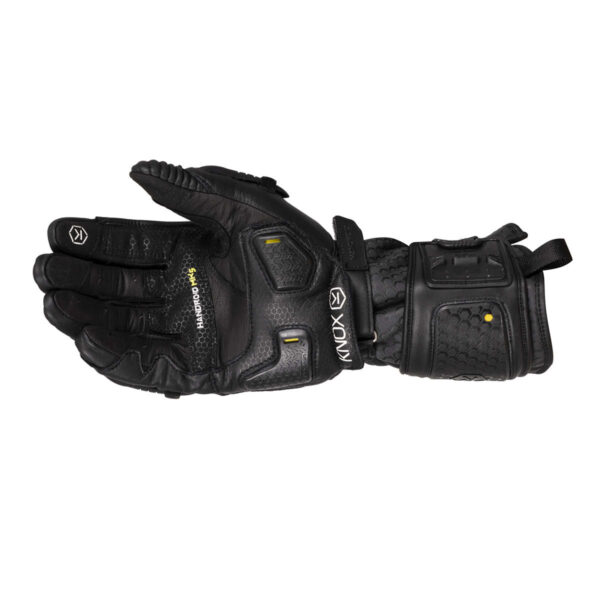 Der MK5 – die neueste Version des preisgekrönten Handroid-Handschuhs mit langer Stulpe. Das auffällige Design umfasst Merkmale wie das Kahnbein-Schutzsystem sowie die exklusiven Exoskelett-Fingerstacheln, die die Oberseite der Finger zum Aufprallschutz bedecken, sowie ein einzigartiges Verschlusssystem, das immer eine perfekte Passform gewährleistet. Die Stacheln sind jetzt weicher und haben ein niedrigeres, aerodynamischeres Profil, büßen jedoch beim Schutz nichts ein. Der Körper des Handschuhs besteht aus trommelgefärbtem koreanischem Leder, welches aufgrund seiner Haptik, seines geringen Gewichts und seiner Festigkeit ausgewählt wurde. Ergänzt wird dies durch 0,8 mm dickes Känguruleder, das für die Handfläche verwendet wird. Obwohl die Festigkeit und Haptik dieses Leders außergewöhnlich sind, wird es dennoch verantwortungsbewusst und ethisch bezogen. Ein neues SPS-Aufprallsystem ist die neueste Entwicklung des patentierten Kahnbein-Schutzsystems von Knox. Dieser verfügt nun über eine Micro-Lock-Panzerung, die in das Design jedes Schiebers integriert ist. Durch die Effektivität des BOA® Fit Systems, braucht der Handroid nun keinen zweiten Klettverschluss mehr am Handgelenk. Die Kastenkonstruktion der Finger sorgt für einen noch bequemeren Handschuh, mit besserem Sitz als vorherige Modelle. Die CE-Prüfung für den Handschuh umfasst 15 verschiedene Tests. Daraufhin haben unabhängige Tester den Handschuhen das Prädikat CE EN 13594-2015 verliehen. Dies umfasst so viel, einschließlich der verwendeten Materialien, der Passform, des Schnitts des Handschuhs, seiner Abriebfestigkeit, der äußerst wichtigen Naht- und Reißfestigkeit sowie der Stoßdämpfung.