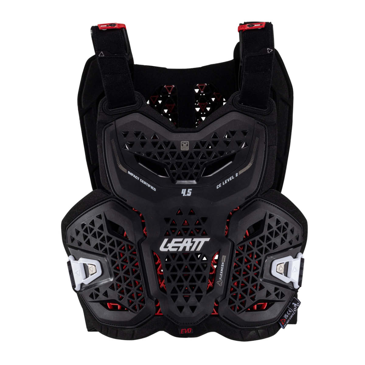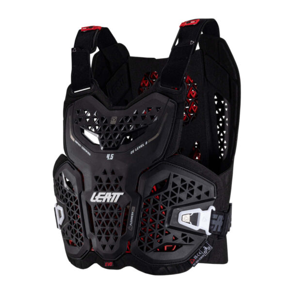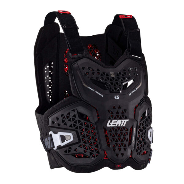Der LEATT Brustpanzer 4.5 EVO bietet erstklassigen Schutz für Brust und Rücken. Er ist 22 % leichter und 50 % besser belüftet als das Modell 2023 und bietet besten Komfort und höchste Atmungsaktivität auf längeren Fahrten.