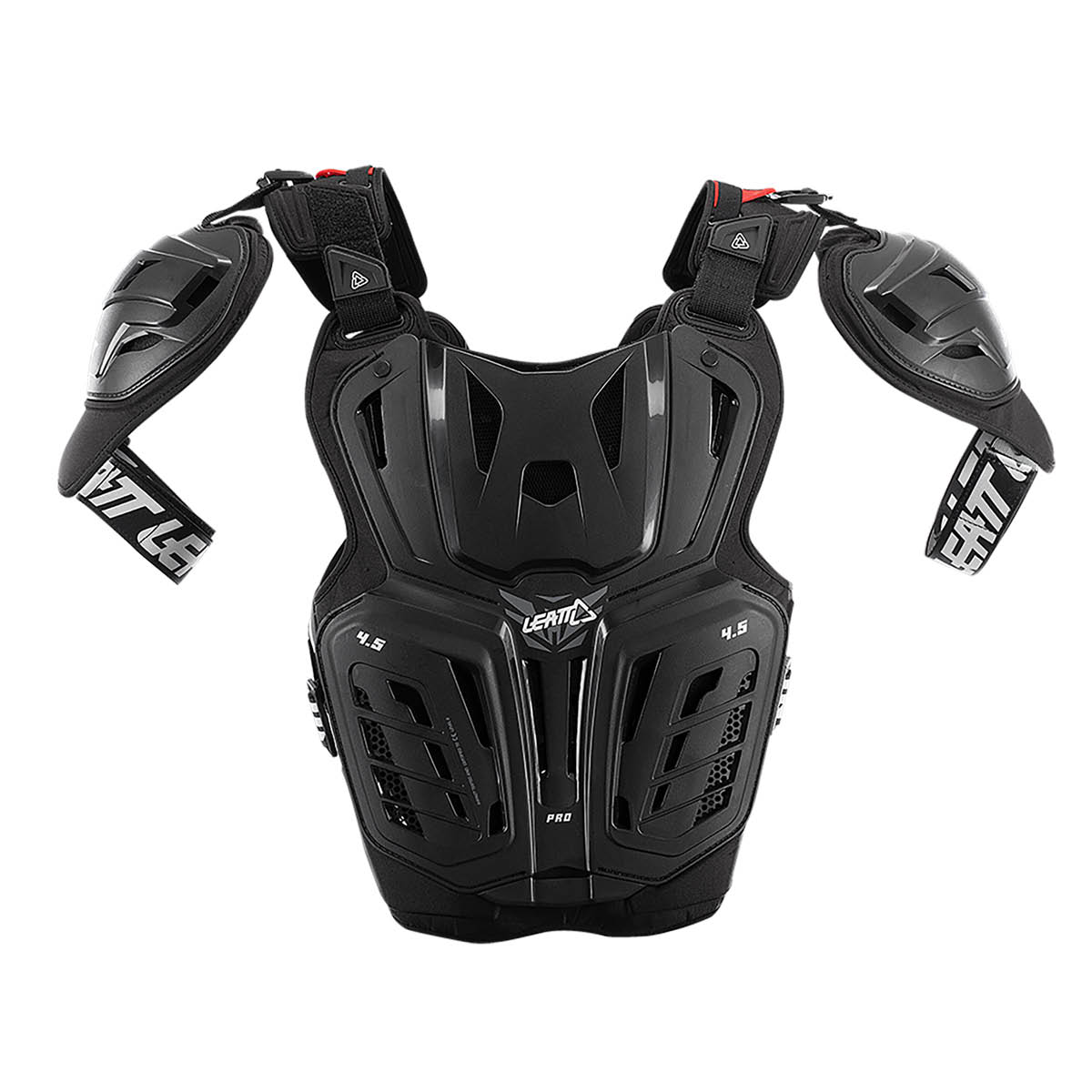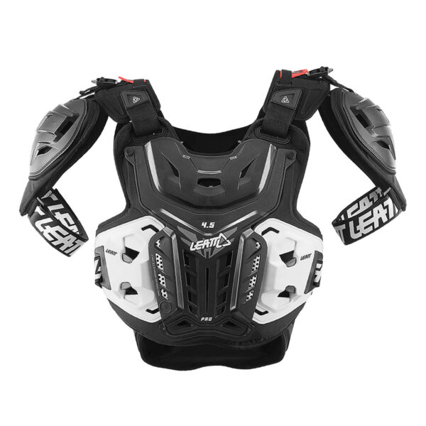 Der Brustpanzer Leatt 4.5 Junior ist mit einem 3DF AirFit Aufprallschaum ausgestattet und bieten vollen Schutz für Brust und Rücken. An der Vorder- und Hinterseite sind Aussparungen für das Tragen eines Neck Brace. Der Brustprotektor ist prEN1621-3 Level 2 und der Rückenprotektor EN1621-2 Level 2 CE zertifiziert. Das Gewicht beträgt in etwa 880g.