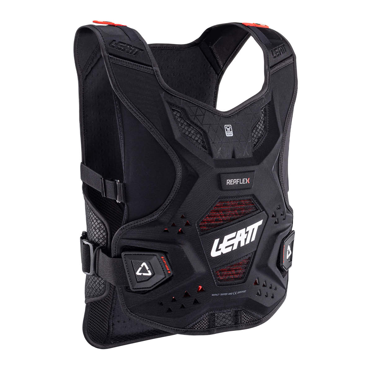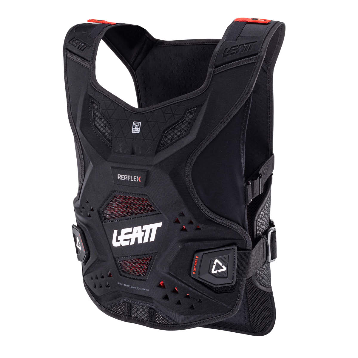 Der Leatt ReaFlex Brustpanzer ist ein CE-zertifizierter Aufprallschutz mit gepolstertem Flankenschutz. Die Kombination aus weichen Aufprallgel für den Rückenprotektor und I-Mesh im Brustbereich bietet einen großen Schutz und einen guten Komfort. Da der Brustpanzer auch BraceOn vorbereitet ist, kann problemlos ein NeckBrace angebracht werden. FFM zertifiziert, Brustprotektor EN1621-3 Level 1, Rückenprotektor EN1621-2 Level 1, gepolsterte Flanken.