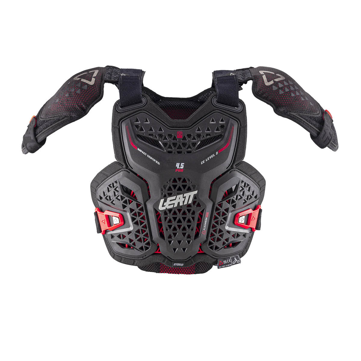 Mit CE-Zertifizierungen auf höchstem Niveau bietet der 4.5 Hybrid Pro Jr zuverlässigen Aufprallschutz: Brust: EN1621-3 Level 2, Rücken: EN1621-2 Level 2,Schulter: EN1621-1 Level 1