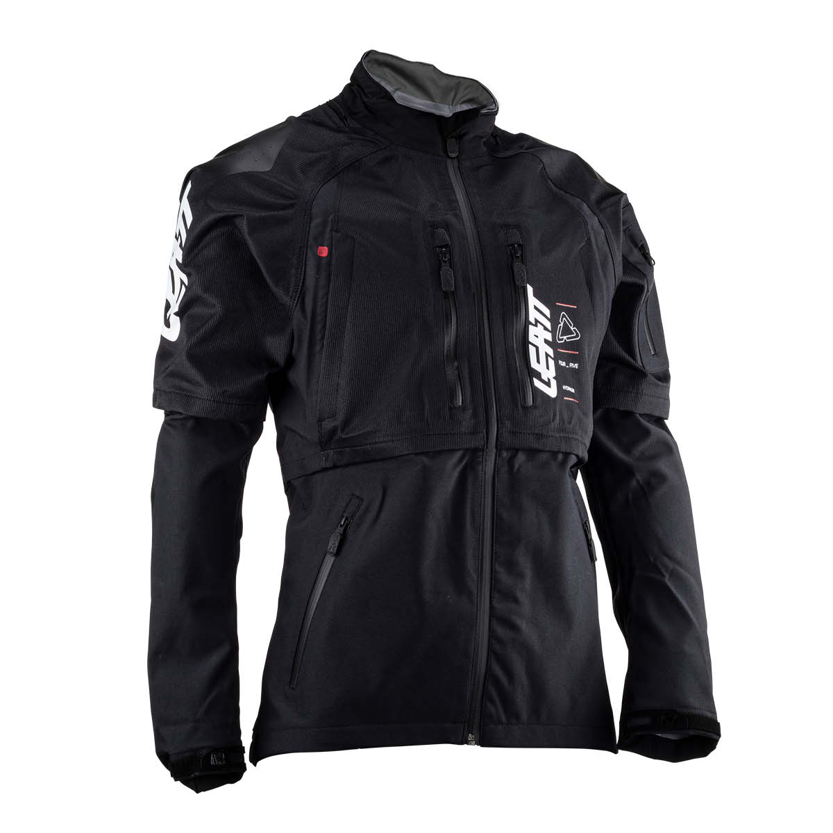Die 4.5 HydraDri Textiljacke ist wasserdicht, atmungsaktiv und besonders geeignet für Fahrten bei starkem Regen und nassem Schnee unter hohem Druck. Die Jacke verfügt über eine eigens entwickelte 3-lagige wasserdichte und atmungsaktive Membran, die eine Wasserdichtigkeit von 20.000 mm+ und eine Atmungsaktivität von 20.000 übertrifft. Das Material lässt kein Wasser durch, leitet jedoch die Körperfeuchtigkeit ab, um ein Auskühlen zu verhindern. Zusätzlich gibt es Belüftungsreißverschlüsse an der Vorder- und Rückseite, um bei Bedarf für eine optimale Luftzirkulation zu sorgen. Die Leatt Jacke bietet zudem fünf Aufbewahrungstaschen mit YKK-Reißverschlüssen und Verstellmöglichkeiten an Taille, Hals und Handgelenk. Der maßgeschneiderte Schnitt ermöglicht das Tragen mit oder ohne Schutzweste und der Kragen kann ein Leatt Neckbrace aufnehmen.