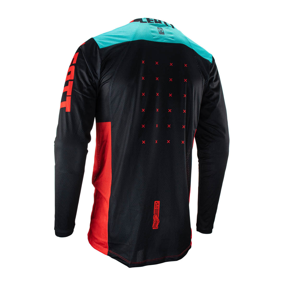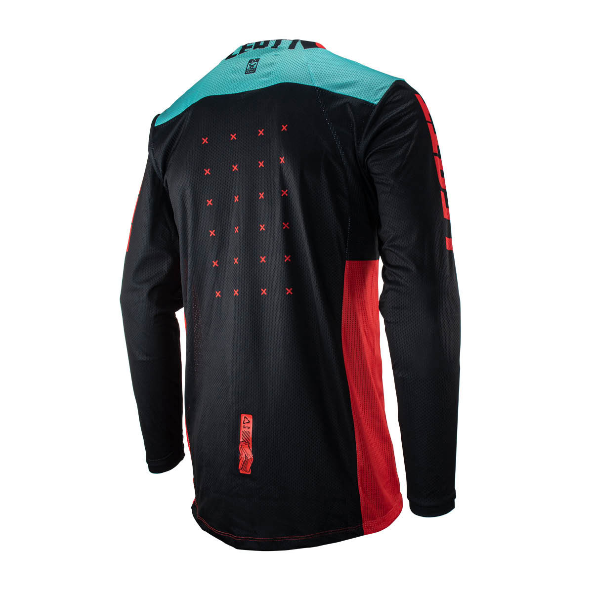 Dieses Leatt Jersey mit klassischer Passform besteht aus MoistureCool 3D Stretch-Mesh-Material. Das Jersey ist äußerst bequem und verfügt über weiche Stretch-Bündchen und zusätzliche Belüftung dank der X-Flow Mesh-Seiteneinsätze. Die taillierte Passform ist so konzipiert, dass sie mit oder ohne Oberkörperschutz getragen werden kann.