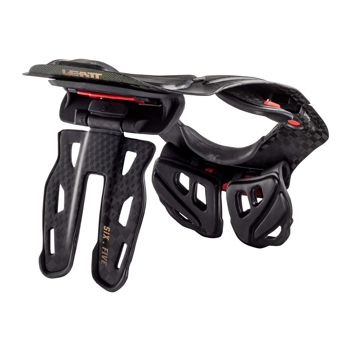 Unabhängige Studien beweisen die Reduzierung der Verletzungen im Nackenbereich um bis zu 89%. Ein spezieller Ausschnitt für das Schlüsselbein hält die empfindlichen Knochen frei. Um die Nackenkräfte umzuverteilen und dem Helm Bewegungsfreiheit zu bieten, wurde die Plattform speziell dafür ausgelegt. Die CoreFlex geteilte hintere klappbare Strebe wurde entwickelt, um mit den Bewegungen des Körpers zu arbeiten und bricht bei übermäßigem Druck auf den Rücken weg. Damit das Leatt 6.5 Carbon Neck Brace auch optimal sitzt, kann es mit den SureFit-Schiebeverstellern, welche eine dreifache Verstellmöglichkeit bieten, angepasst werden. Das flache Druckknopfsystem gewährt ein schnelles und einfaches Öffnen und Schließen. CE geprüft und zertifiziert 89/686/EEC. Das Gewicht beträgt in etwa 600g