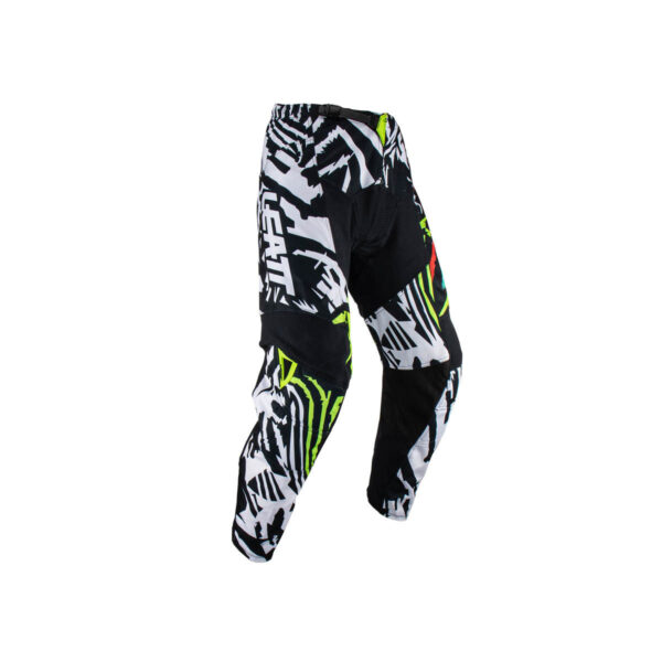 Bei der Hose werden Stretch-Strickeinsätze verwendet, die an kritischen Stellen verstärkt sind und somit Haltbarkeit und Atmungsaktivität ermöglichen. Ein Ledereinsatz am rechten Knie schützt das Bein vor der Hitze des Auspuffs, und hochwertige YKK-Reißverschlüsse mit Silikongrip in der Taille sorgen dafür, dass die Hose an ihrem Platz bleibt.
