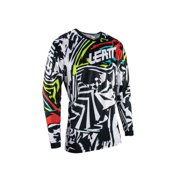Das Jersey besteht aus einem 3D-Stretch-Mesh-Gewebe mit Luftkanälen und Overlock-Nähten für mehr Komfort, die taillierte Passform ermöglicht es, das Jersey mit oder ohne Protektoren zu tragen.