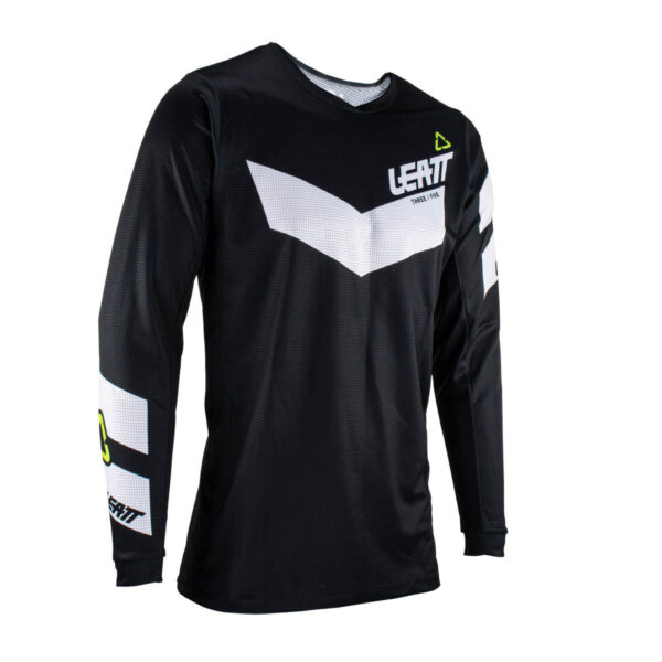 Das Jersey besteht aus einem 3D-Stretch-Mesh-Gewebe mit Luftkanälen und Overlock-Nähten für mehr Komfort, die taillierte Passform ermöglicht es, das Jersey mit oder ohne Protektoren zu tragen.