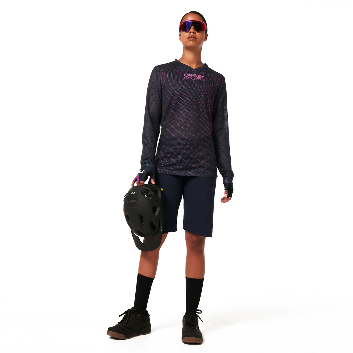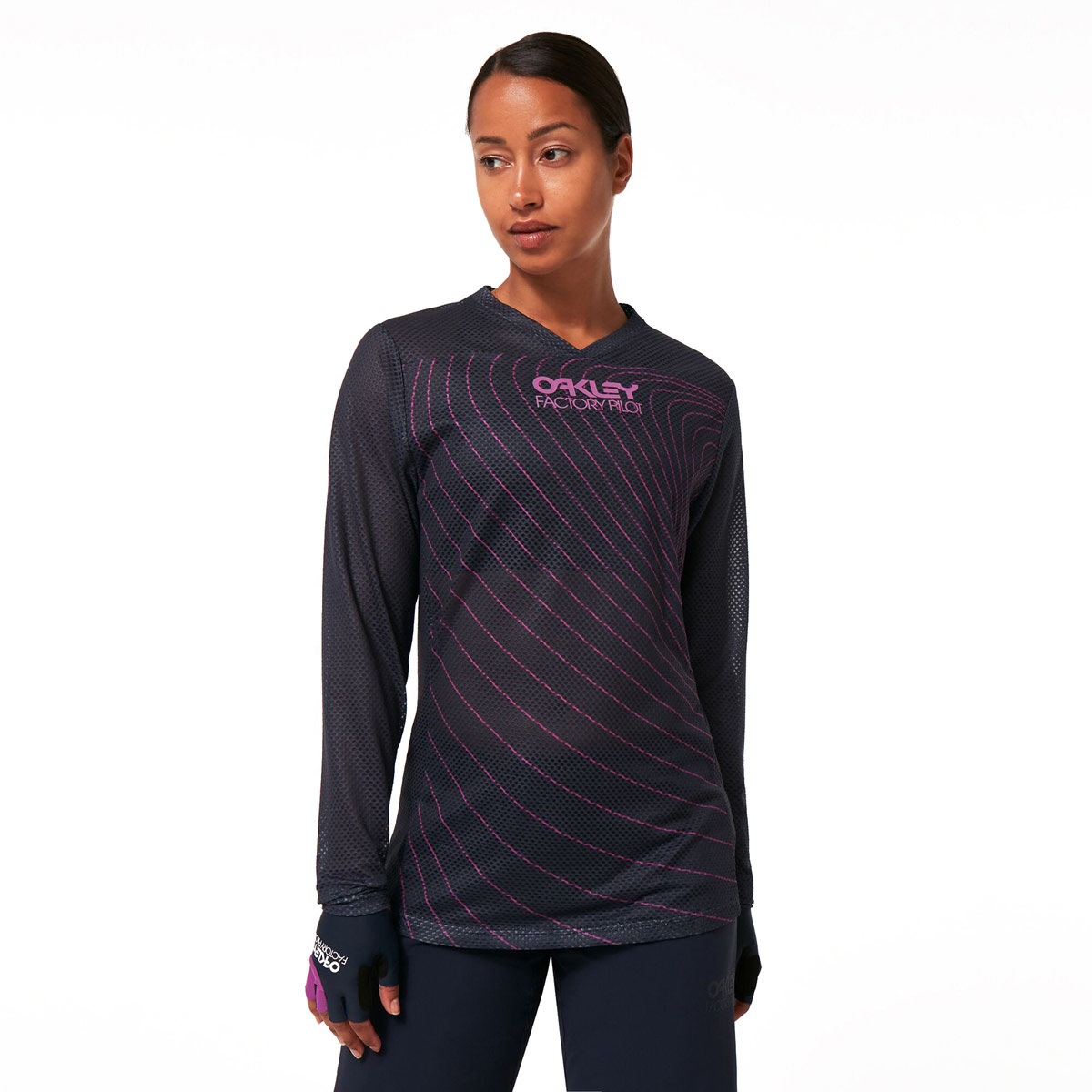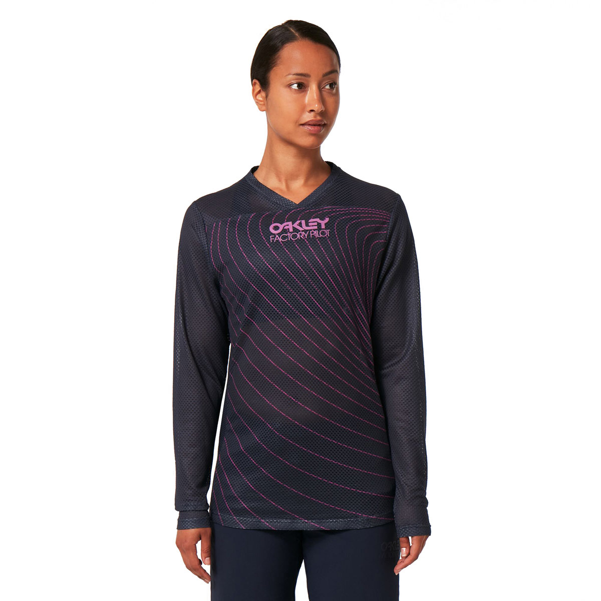 Das neue Factory Pilot RC Damen MTB Langarmjersey ist dein perfekter Begleiter am Bike. Dank Hydrolix™-Technologie leitet das 4-Wege Stretch-Mesh-Material Feuchtigkeit vom Körper ab, es ist höchst atmungsaktiv und trocknet besonders schnell. Factory Pilot Logo auf der Brust, Drop-Tail Saum.