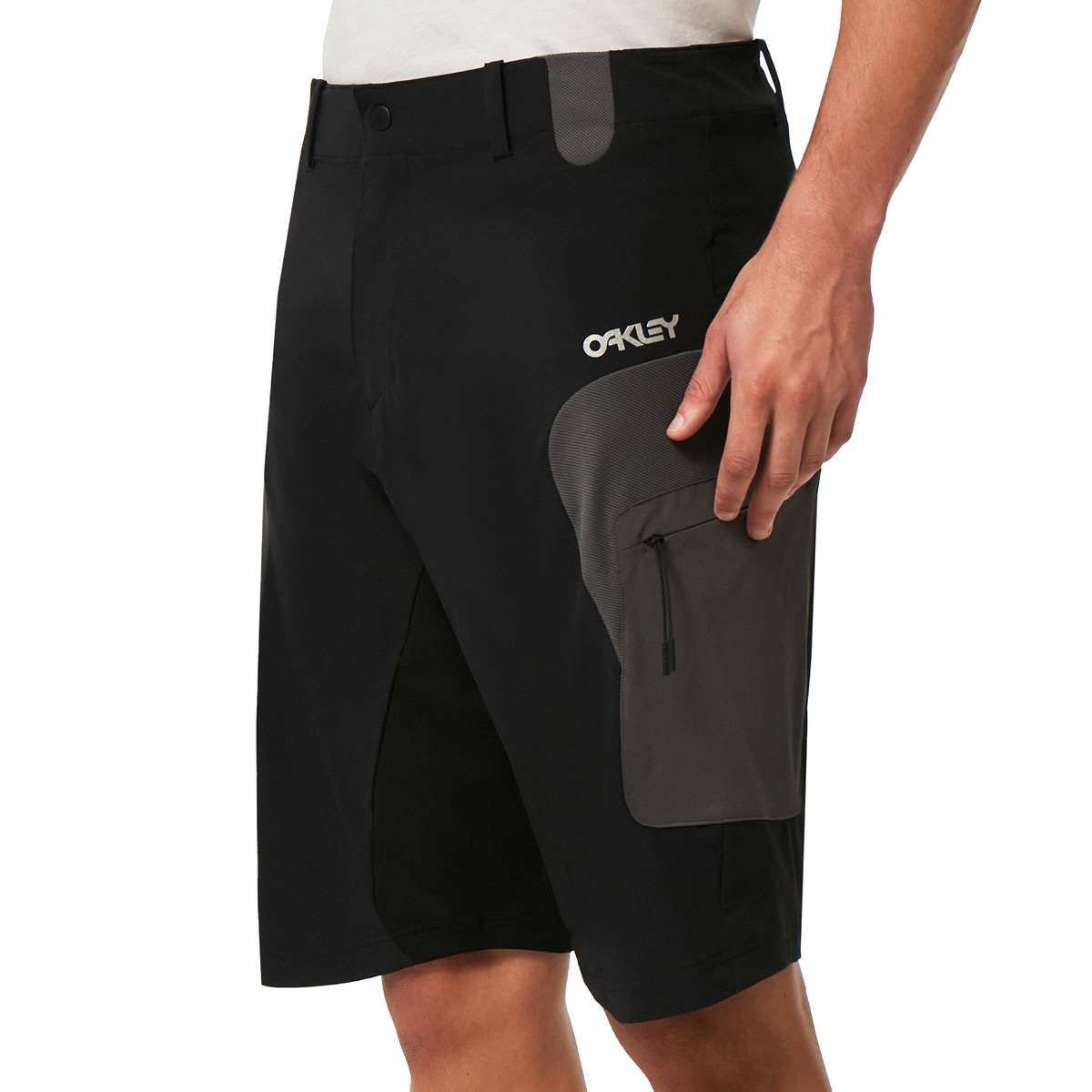 Die brandneue Maven MTB Cargo-Shorts aus wasserabweisendem 4-Wege Stretch-Material ist perfekt geeignet für viele Stunden auf dem Trail. Für sicheren Halt der Shorts sorgt der verdeckte Reverse Coil Zippverschluss, für höchsten Komfort das Stretch-Mesh-Material auf der Rückseite der Shorts, an der Taille und der Innenseite der Oberschenkel. Für bessere Sichtbarkeit in der Dunkelheit ist am rechten hinteren Bein ein reflektierendes Factory Pilot Logo sowie ein reflektierendes OAKLEY an der linken Tasche.