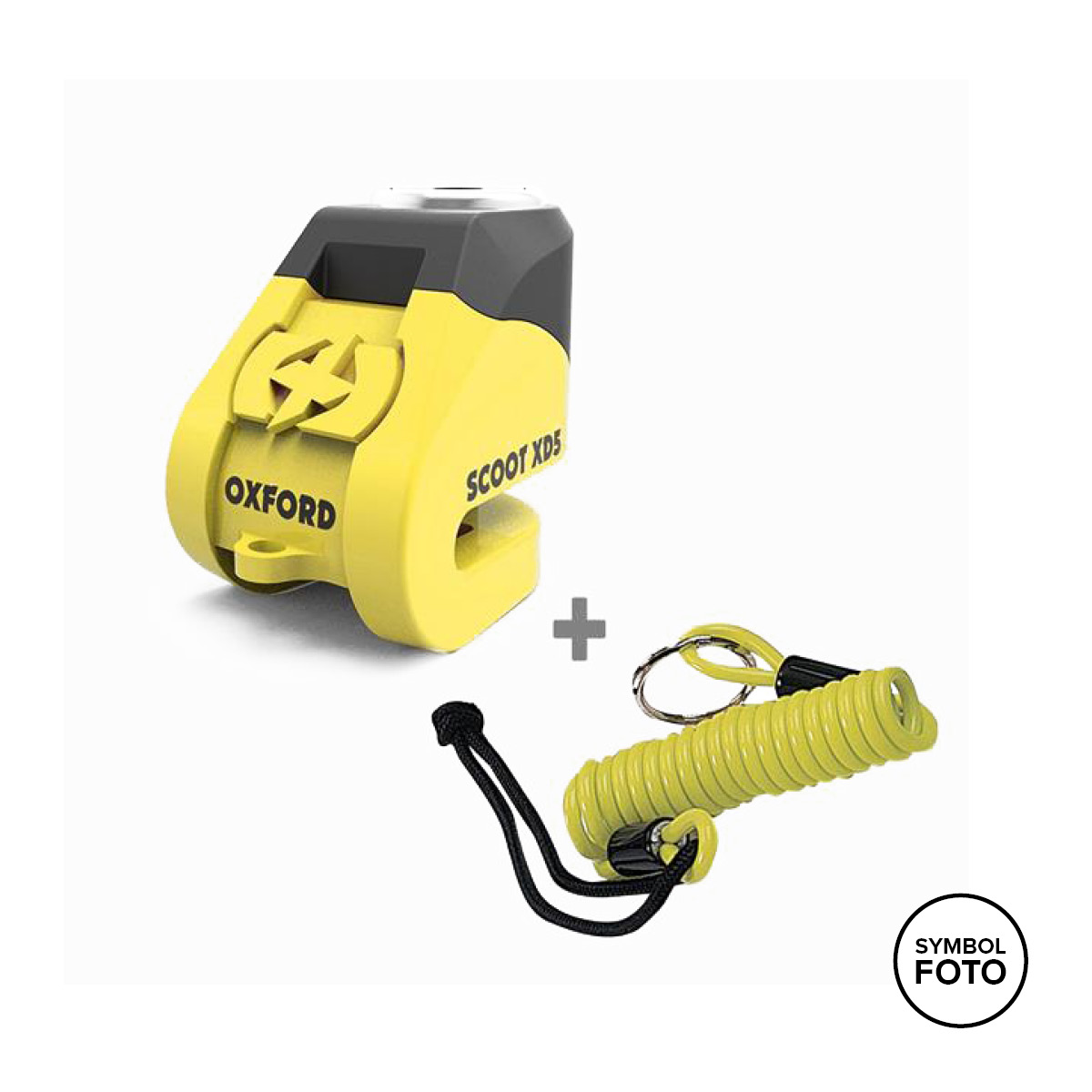OXFORD Bremsscheibenschloss SCOOTER XD5, kompakte Form passend für viele Vespa Modelle, 5mm Bolzen, 3 Schlüssel inkl. Minder Cable.
