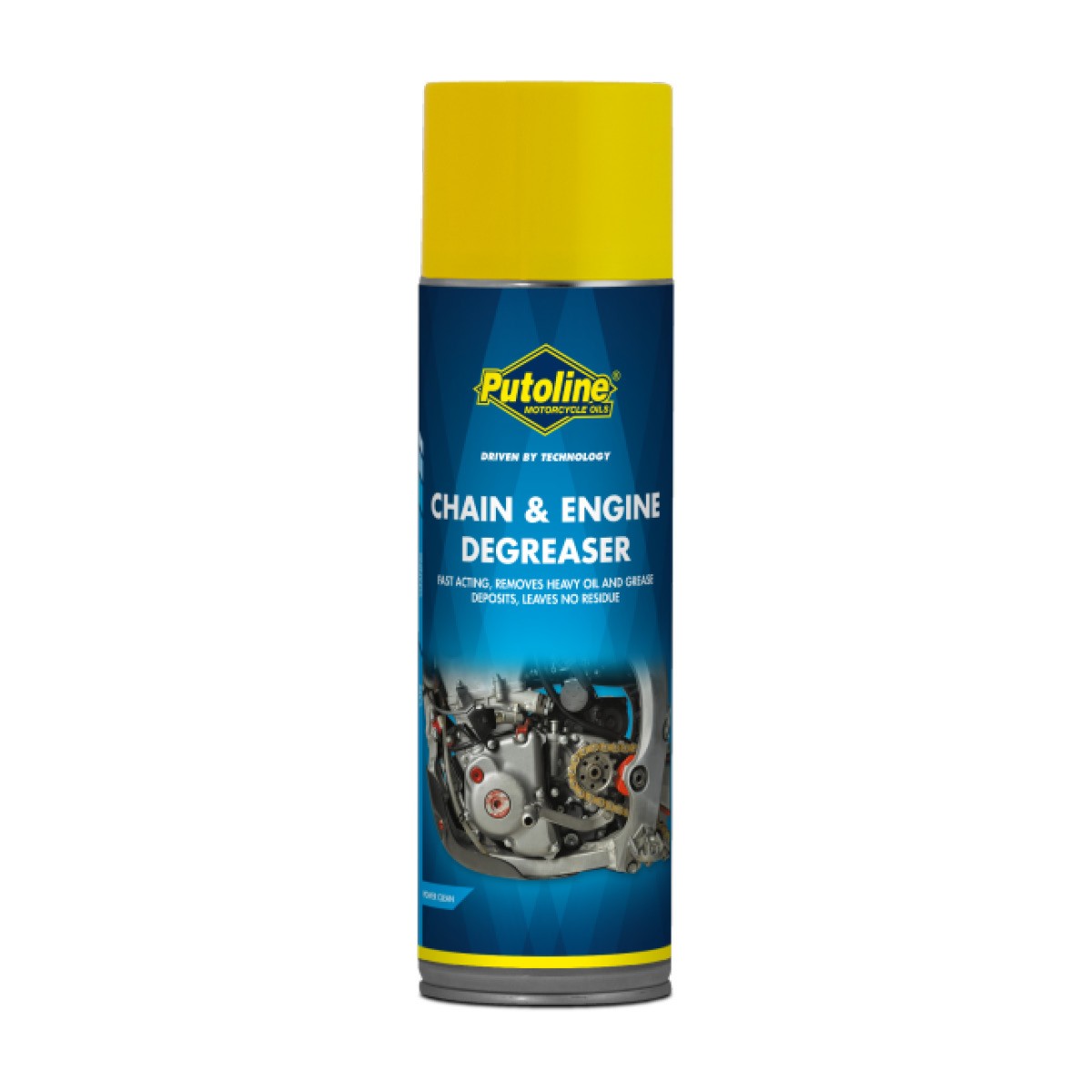 PUTOLINE Chain + Engine Degreaser reinigt und entfettet Kette, Motor und Metallteile. Einfachste Anwendung: Vorsprühen und mit Wasser abspülen. Kann auch in Verbindung mit einem Hochdruckreiniger verwendet werden, hinterlässt keine Rückstände.