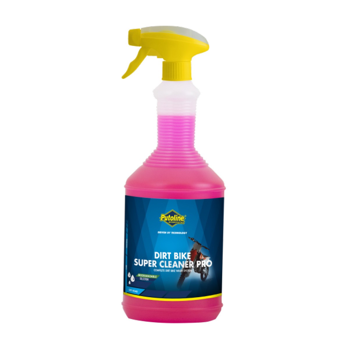 PUTOLINE Dirt Bike Super Cleaner Pro ist ein hoch konzentrierter und biologisch abbaubarer Reiniger speziell für MX- und Enduromotorräder, Scooter oder Fahrräder. Greift weder Gummi noch Kunststoffe an. Hinterlässt einen superben Glanz.