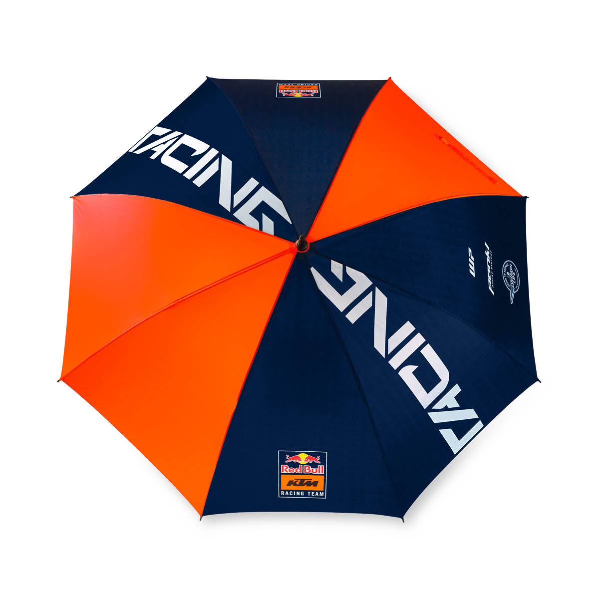 Mit dem neuen RED BULL KTM Racing Official Teamline Regenschirm machen selbst die nassesten Tage an der Rennstrecke Spaß und er lässt Dich als richtigen Motorsport-Fan erkennen.