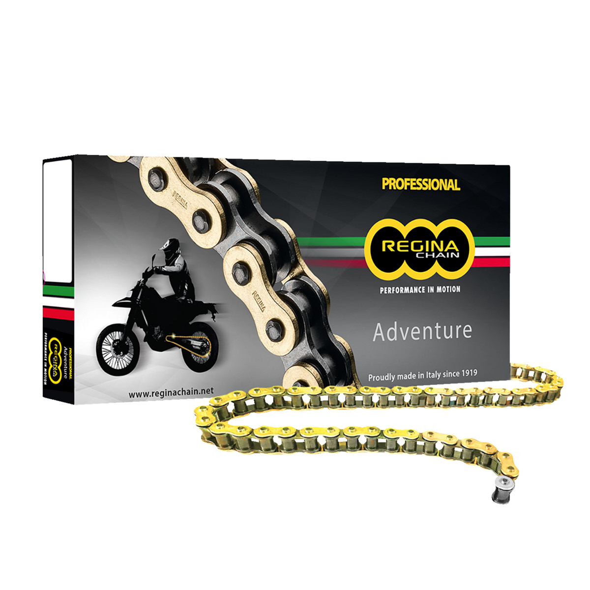 REGINA 520er Kette, dabei handelt es sich um eine der meist verkauften Enduroketten überhaupt. Viele Motorradhersteller vertrauen bei ihrer Serienaustattung auf Produkte von REGINA. Die speziellen Z-Ringe sorgen dafür das Kettenfett möglichst lange in den Gliedern bleibt um möglichst wenig Verschleiß zu verursachen. Für Endurofahrer ein absolutes MUSS. (125cc-600cc)
