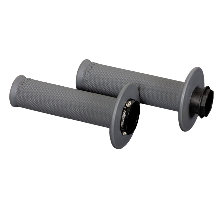 Die RENTHAL G233 MX Lock-On Griffe, die perfekte Wahl für anspruchsvolle Offroad-Fahrer, die einen robusten und komfortablen Griff suchen. Diese Griffe sind mit RENTHALs mittlerem Griffgummi in einem durchgehenden Diamantmuster ausgestattet. Der mittlere Gummi ist das festeste Material in der RENTHAL MX Lock-On Grip-Serie und bietet eine bemerkenswerte Langlebigkeit sowie eine außergewöhnliche Stoßdämpfung. Mit seiner eleganten, mittleren grauen Farbgebung fügt sich dieser Griff nahtlos in Ihre Ausrüstung ein. Die Full Diamond MX Lock-On Griffe von RENTHAL sind speziell entwickelt, um Ihnen unvergleichlichen Halt in trockenen Bedingungen zu bieten. Dank des durchgehenden Diamantmusters sind diese Griffe nicht durch Waffelmuster unterbrochen, was eine durchgehende Kontaktfläche schafft, die den Grip und die Kontrolle erhöht. Die kleinere äußere Durchmesserform des Diamantmusters macht den Griff zwar gefühlmäßig kleiner, ohne dass er tatsächlich dünner ist. Dies macht ihn zur idealen Wahl für Fahrer mit kleinen oder mittleren Handschuhen, die genau den richtigen Komfort und das Gefühl benötigen. . Jede Packung der RENTHAL MX Lock-On Grips enthält mehrere Gasgriff-Cams, die mit den meisten modernen 2- und 4-Takt-Maschinen kompatibel sind. Dies gewährleistet eine einfache Montage und Anpassung an verschiedene Motorräder.
