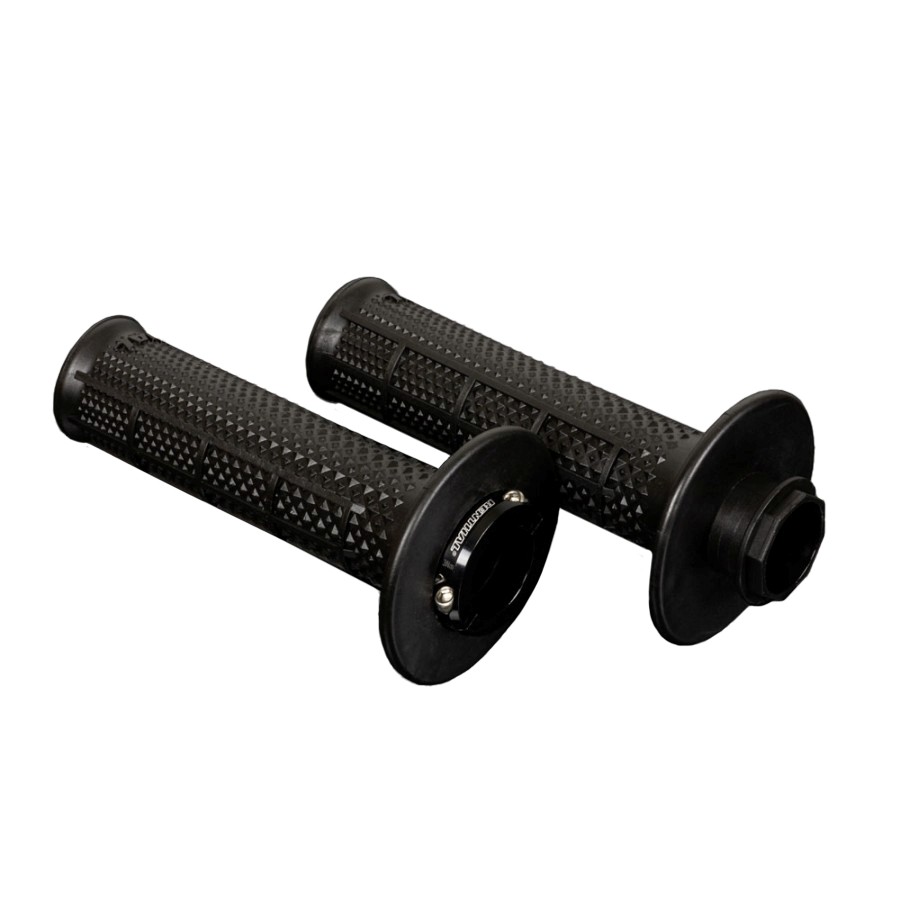 Die RENTHAL G239 MX Lock-On-Griffe verfügen über RENTHALS Premium R-Works UltraTacky™ Grip Compound in einem ergonomisch gestalteten konischen Muster. Die einzigartigen Eigenschaften der UltraTacky™-Mischung sorgen für eine stärkere Verbindung mit dem Lenker, sodass das Bike mit weniger körperlichem Einsatz gelenkt werden kann. RENTHAL Tapered MX Lock-On-Griffe verfügen über das einzigartige konische Muster. Übergroße Rauten wurden so entworfen, dass sie die Form einer geschlossenen Faust nachbilden. Sie verjüngen sich auf eine normale Rautengröße, um die Traktion zwischen Fahrer und Maschine zu verbessern. Darüber hinaus sorgt das Half Waffle-Muster für zusätzlichen Halt in wichtigen Bereichen. Jede Packung der RENTHAL MX Lock-On Grips enthält mehrere Gasgriff-Cams, die mit den meisten modernen 2- und 4-Takt-Maschinen kompatibel sind. Dies gewährleistet eine einfache Montage und Anpassung an verschiedene Motorräder.