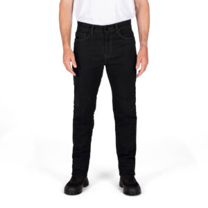 Geripptes Stretchmaterial an strategischen Stellen ermöglicht volle Beweglichkeit, ohne Kompromisse bei der Haltbarkeit. Die Ledereinsätze an der Innenseite der Knie schützen vor Hitze und Abrieb – besonders bei häufigem Kontakt mit dem Motorrad.