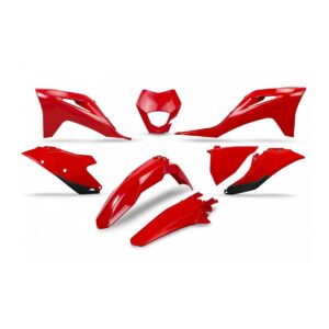 Die RACETECH Kunststoff-Kits zeichnen sich durch eine optimale Passform aus. Dazu ist der Kunststoff qualitativ hochwertig, und äußerst strapazierfähig. Zum Lieferumfang gehören: 1x Vorderer Kotflügel, 1x Hinterer Kotflügel, 1x Startnummernschild, 1x Tankabdeckung, je 1 Gabelprotektor (links und rechts), je 1 Kühlerspoiler (links und rechts), je 1 Seitenverkleidung (links und rechts).