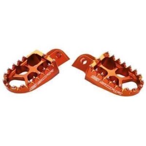 Die Fußraster von SCAR sind aus CNC gefrästem Spezialaluminium hergestellt (25% leichter als Original). Durch die Stainless-Steel Noppen und der 25% breiteren Ausführung als OEM Fußrasten (57mm) bieten diese im Motocross-, Enduro-, wie auch im Freestyle Bereich hervorragenden Grip und Komfort. Lieferung: 1 Paar