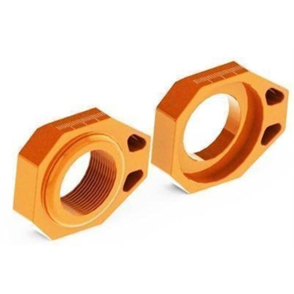 Die SCAR Radachsbefestigung wird für die präzise Achseinstellung CNC gefräst (A6061-T6 Alu). Für eine längere Lebensdauer wird die Oberfläche farbig eloxiert. Um die Kettenlänge schnell einzustellen ist eine Rückwärts- wie auch eine Vorwärtsposition möglich (optimale Justierung). Lieferumfang: 1 Paar