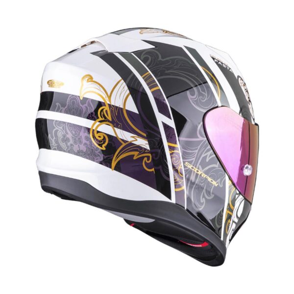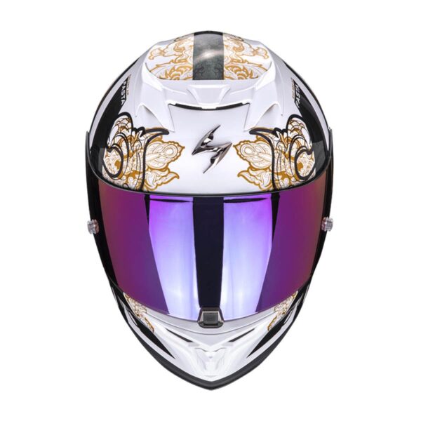 Der SCORPION Helm EXO-520 Evo Air Fasta wurde entwickelt um eine ideale Kombination aus Aerodynamik auf Hypersportniveau und täglichem Fahrkomfort zu erreichen. Der Helm verfügt über eine integrierte Sonnenblende und eine Pinlock Max Vision Scheibe. Das Visier kann werkzeuglos dank Ellip-tec II System gewechselt werden. Kwikwick 2 – temperaturausgleichender Stoff. Das Innenfutter ist herausnehmbar und waschbar. Kwikfit Wangenpolster erlauben die Verwendung der meist verwendeten Arten von Brillen. Vorbereitung für ein EXO-COM Kommunikationssystem (nicht im Lieferumfang enthalten). Die Wangenpolster können mittels Not-Entriegelung m Notfall herausgezogen werden. Das verspiegelte/getönte Visier ist nicht im Lieferumfang enthalten. ECE 22.06.