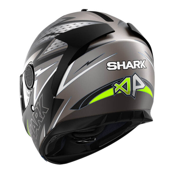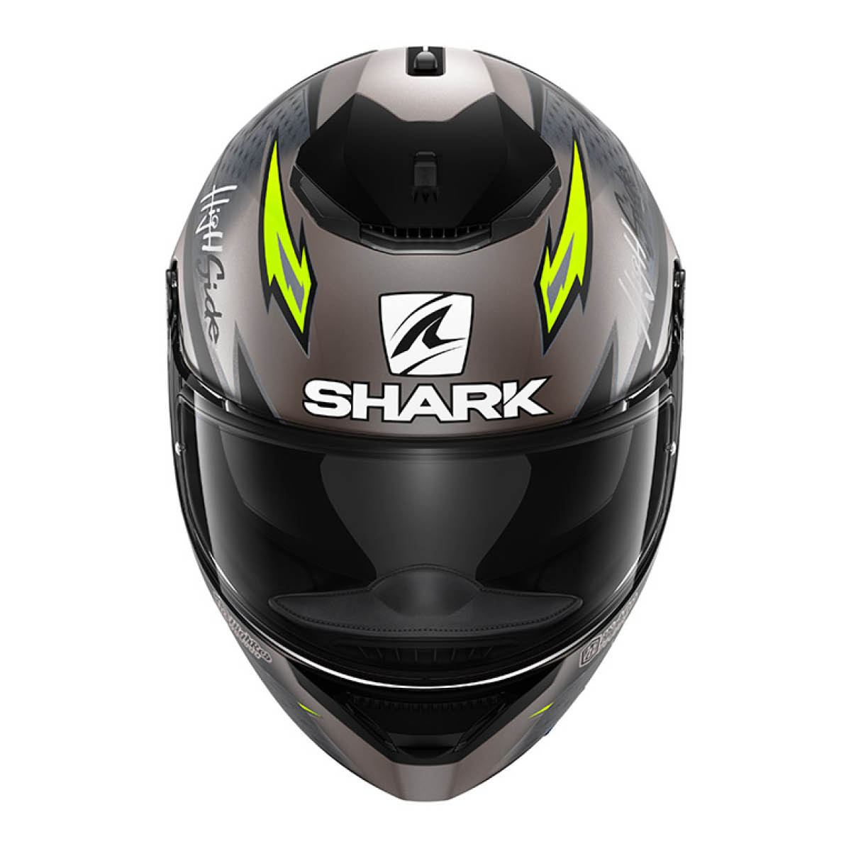 Der sportliche Shark Spartan überzeugt durch höchste Ausstattungs-Qualität bei besonders geringem Gewicht. Der nur 1390 Gramm leichte Integralhelm besitzt zahlreiche innovative Features, die eine optimale Passform bei geringer Lärmentwicklung ermöglichen. Vor allem die integrierte Sonnenblende macht den Spartan auch für Tourenfahrer interessant. Die Gestaltung wurde ganz der Funktionalität untergeordnet: Für eine optimale Aerodynamik ist jedes noch so kleine Element so positioniert und geformt, dass es seinen ganz speziellen Zweck erfüllt. Ein Helm, der so kompakt wie inspirierend ist. Der Doppelspoiler mit eingearbeiteten Luftöffnungen verbessert nicht nur die Aerodynamik, sondern auch die Belüftung des Helms. Wangenpolster sowie Kopfpolster sind herausnehmbar und waschbar. ECE 22.05 zertifiziert