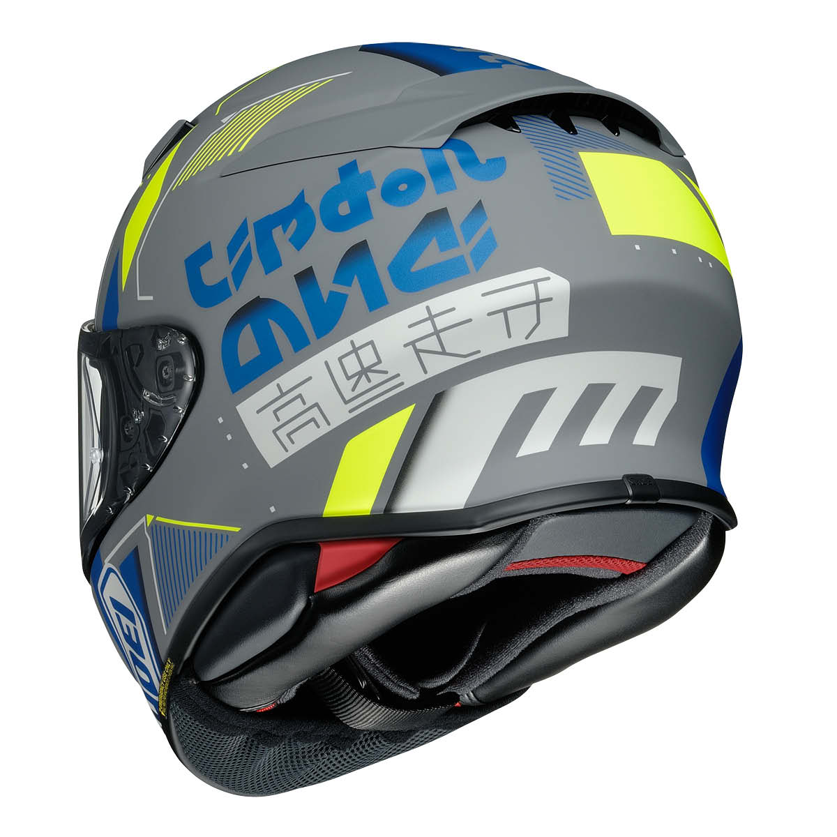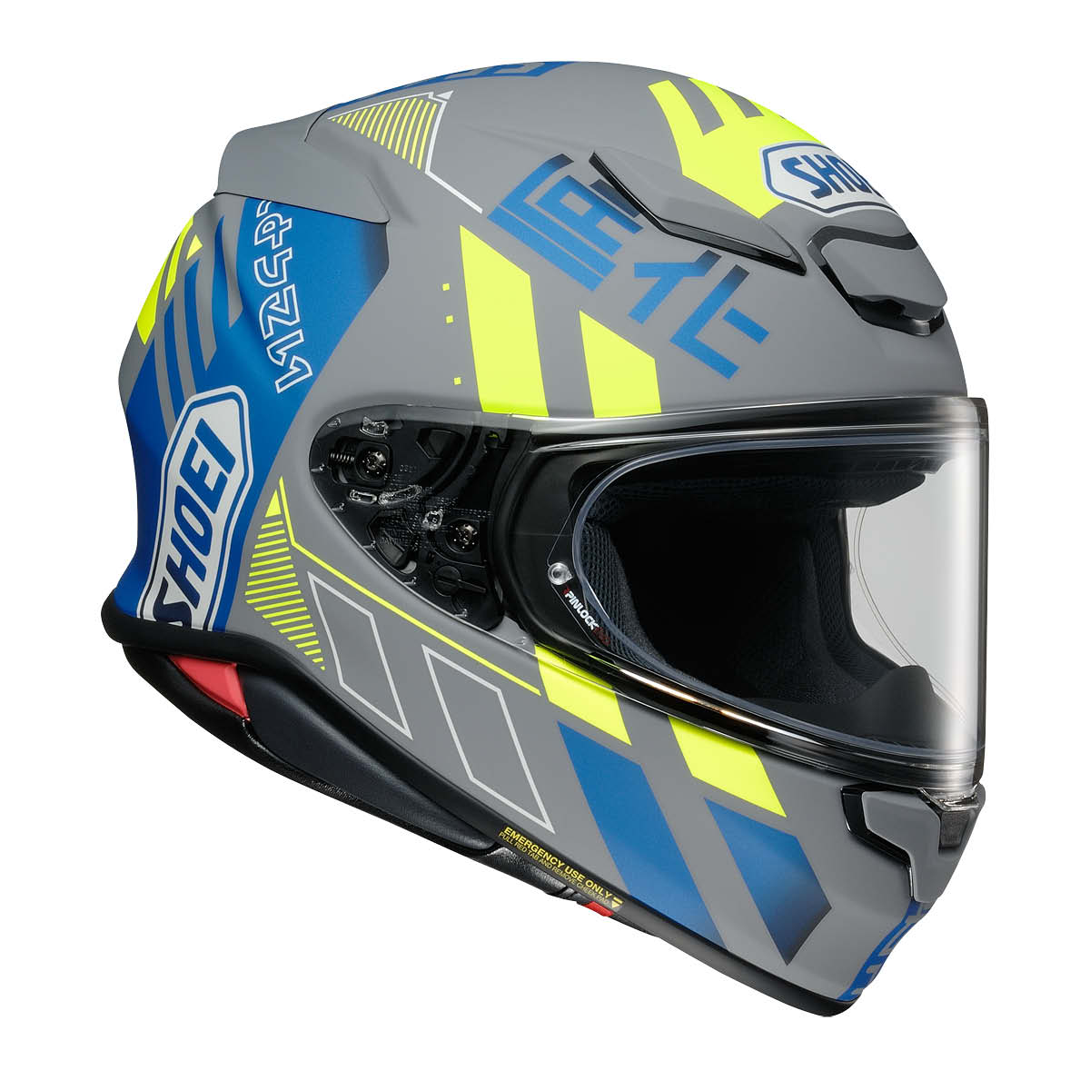 Der SHOEI NXR2 ist ein leichter Sporthelm, mit guter Passform und Aerodynamik und effizienter Ventilation. Die Außenschale aus AIM (Advanced Integrated Matrix) in Verbindung mit mehreren Element mit Polystyrolkern besticht durch einen optimalen Aufprallschutz. Das neue Visier CWR-F2 ermöglicht eine natürliche und verzerrungsfreie Sicht, ein mittiger Verriegelungsmechanismus verhindert das ungewollte Öffnen des Visiers. Dank der Weiterentwicklung des Vorgängermodells der Mechanik, ist dies werkzeugfrei und schnell justierbar. Die vergrößerte und beschlaghemmdende PINLOCK®EVO erlaubt eine Großteils ungetrübtes Sichtfeld, auch unter schwierigen Wetterverhältnissen. Der Doppel-D-Kinnriemen-Verschluß ist leicht verstellbar und sicher. Im und ency Quick Release System), das im Falle eines Sturzes das Abnehmen des Helms von außen durch Entfernen der Seitenpolsterung erleichtert.Er verfügt über das EQRS-System (Emergency Quick Release System), das im Falle eines Sturzes das Abnehmen des Helms von außen durch Entfernen der Seitenpolsterung erleichtert. Wangenpolster und Kinnriemenpolster sind herausnehmbar und waschbar. Der Helm verfügt über 6 Lüftungseinlässe und 4 Abluftauslässe reduzieren die Innenraumtemperatur. Die Schieber der der Einlässe sind mit Handschuhen gut ertastbar. Die Montage eines Kommunikationssytems ist möglich. Der Helm wird inklusive Kinnriemenpolster, Breath Guard u. Chin Curtain und SHOEI Helmbeutel gelilefert. ECE 22.06