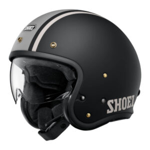 Genieße das Gefühl von Freiheit, Stil und Sicherheit auf zwei Rädern – mit dem SHOEI J.O2. Dieser Jethelm verbindet puren Fahrgenuss mit einem unverwechselbaren Look, wie ihn nur echte Originale bieten können. Feine Applikationen aus Glatt- und Nubukleder-Imitat verleihen ihm eine edle Note, während das integrierte, mehrfach verstellbare Visier für klare Sicht in jeder Situation sorgt. Klassische Druckknöpfe am Stirnbereich ermöglichen die Befestigung eines Helmschirms und unterstreichen den authentischen Charakter dieses stilvollen Begleiters.