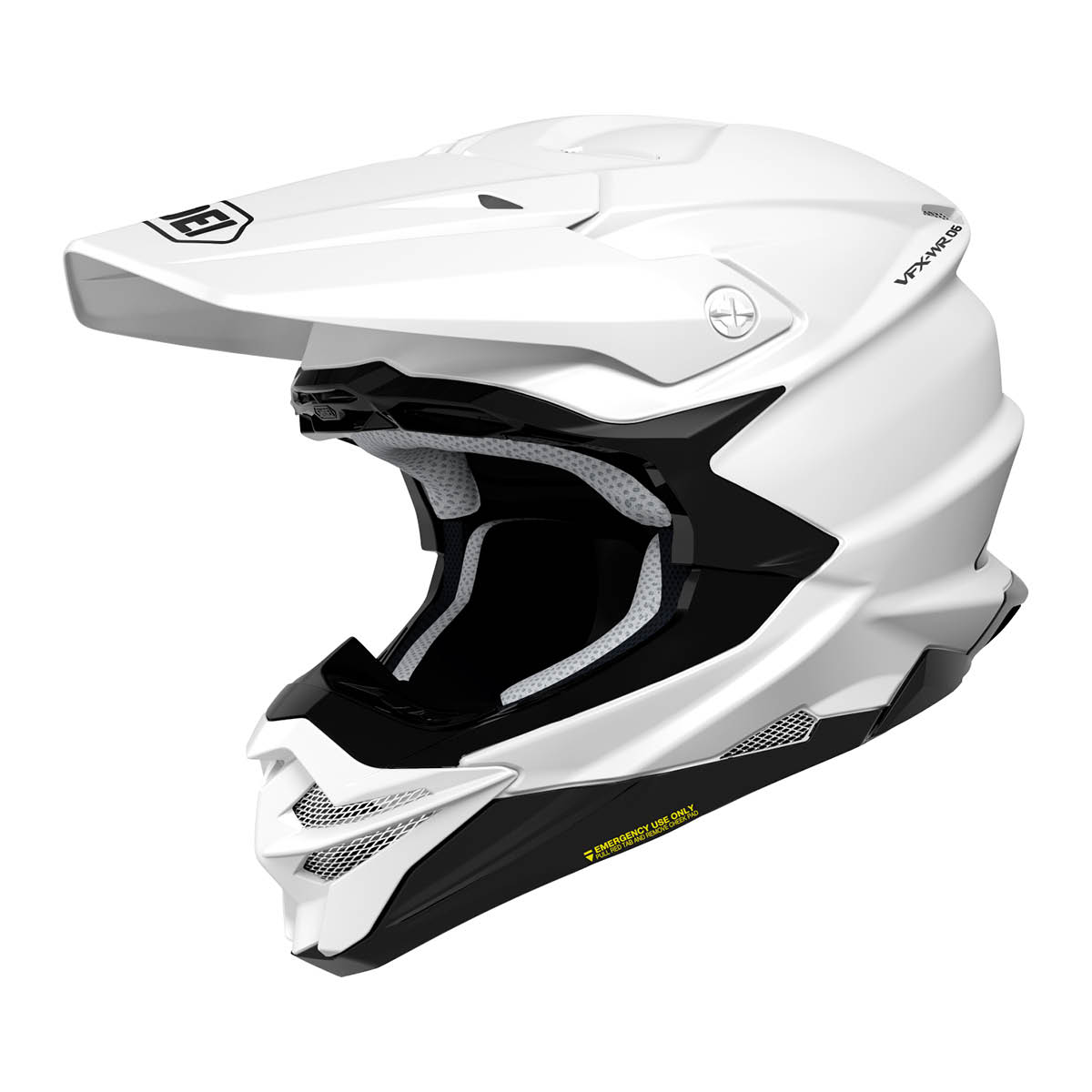 Der SHOEI Helm VFX-WR 06 ist ein Offroadhelm in modernster Schalenbautechnik mit leichtter und hochstabiler Helmschale. Der Helm besteht mit 6 Lagen aus Glasfasern, organischen Fasern und High-Performance-Fasermaterialien und der AIM+ Außenschale, inklusive Polystyrolkernsystem und dem neuen Motion Energy Distribution System (M.E.D.S). Ein mehrteiliger EPS-Kern verringert die flexibel, verbundenen Innenschalenelemente durch Reduktion der Rotationsendergie das Verletzungsrisiko beim Aufprall. Doppel-D-Kinnriemen-Verschluss, EQRS System für die Wangenpolster. Innenmaterial: Die Kopf- u. Wangenpolster bestehen aus Max-Dry-MateriaL u. sind herausnehmbar und waschbar. 7 Lüftungseinlässe und 8 Abluftauslässe. ECE: 22-06.