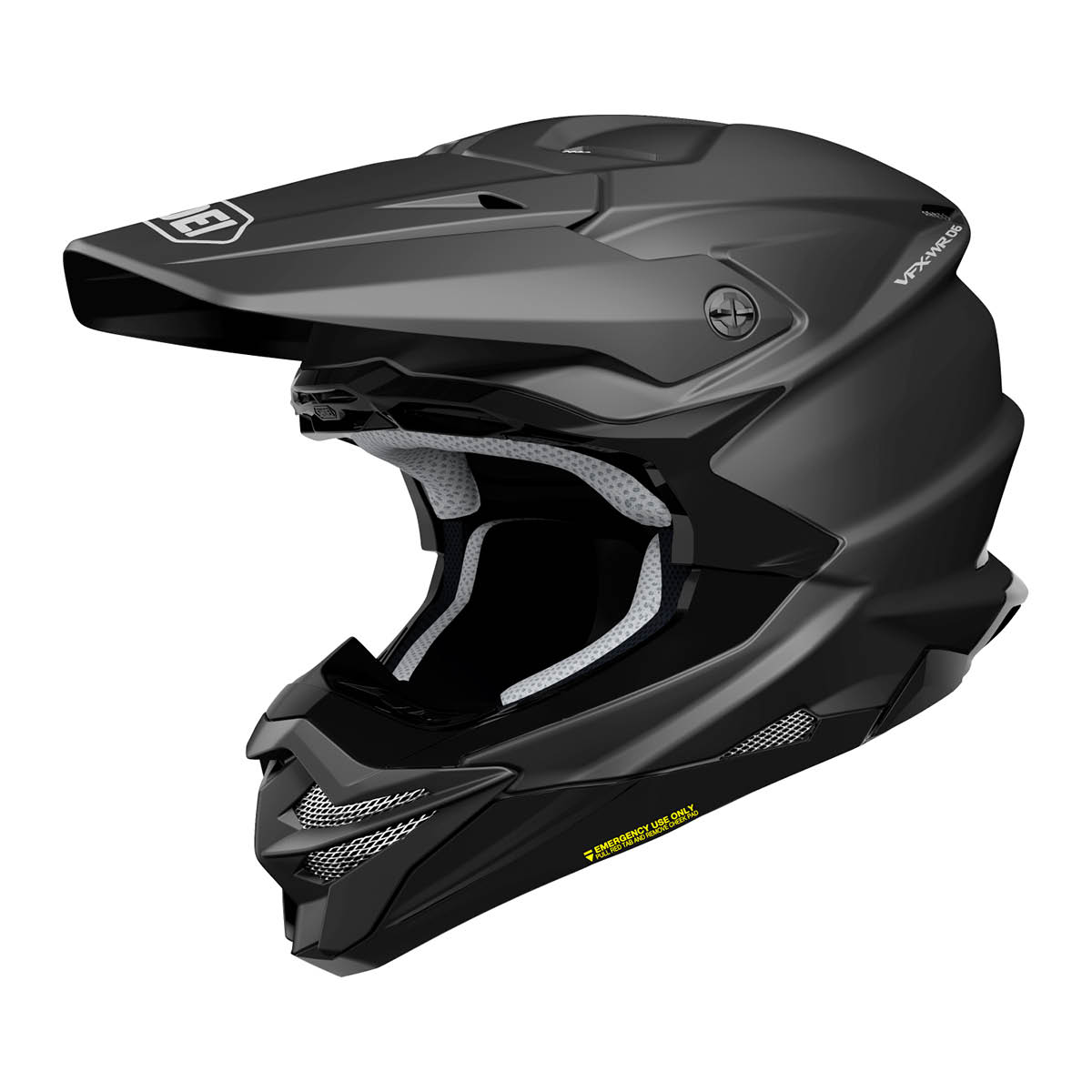 Der SHOEI Helm VFX-WR 06 ist ein Offroadhelm in modernster Schalenbautechnik mit leichtter und hochstabiler Helmschale. Der Helm besteht mit 6 Lagen aus Glasfasern, organischen Fasern und High-Performance-Fasermaterialien und der AIM+ Außenschale, inklusive Polystyrolkernsystem und dem neuen Motion Energy Distribution System (M.E.D.S). Ein mehrteiliger EPS-Kern verringert die flexibel, verbundenen Innenschalenelemente durch Reduktion der Rotationsendergie das Verletzungsrisiko beim Aufprall. Doppel-D-Kinnriemen-Verschluss, EQRS System für die Wangenpolster. Innenmaterial: Die Kopf- u. Wangenpolster bestehen aus Max-Dry-MateriaL u. sind herausnehmbar und waschbar. 7 Lüftungseinlässe und 8 Abluftauslässe. ECE: 22-06.