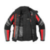 Das Hauptmaterial besteht aus hochfestem Extra Tenax 3-Lagen-Nylon 6.6, das eine hohe Abriebfestigkeit bietet, sowie aus PU-beschichtetem Polyester in den für den Tragekomfort wichtigen Bereichen. Sechs großflächige Mesh-Einsätze sorgen für eine optimale Luftzirkulation; sie sind an Brust, Unterarm und Rücken strategisch platziert, sodass der Fahrer an den wärmsten Tagen optimal gekühlt wird.