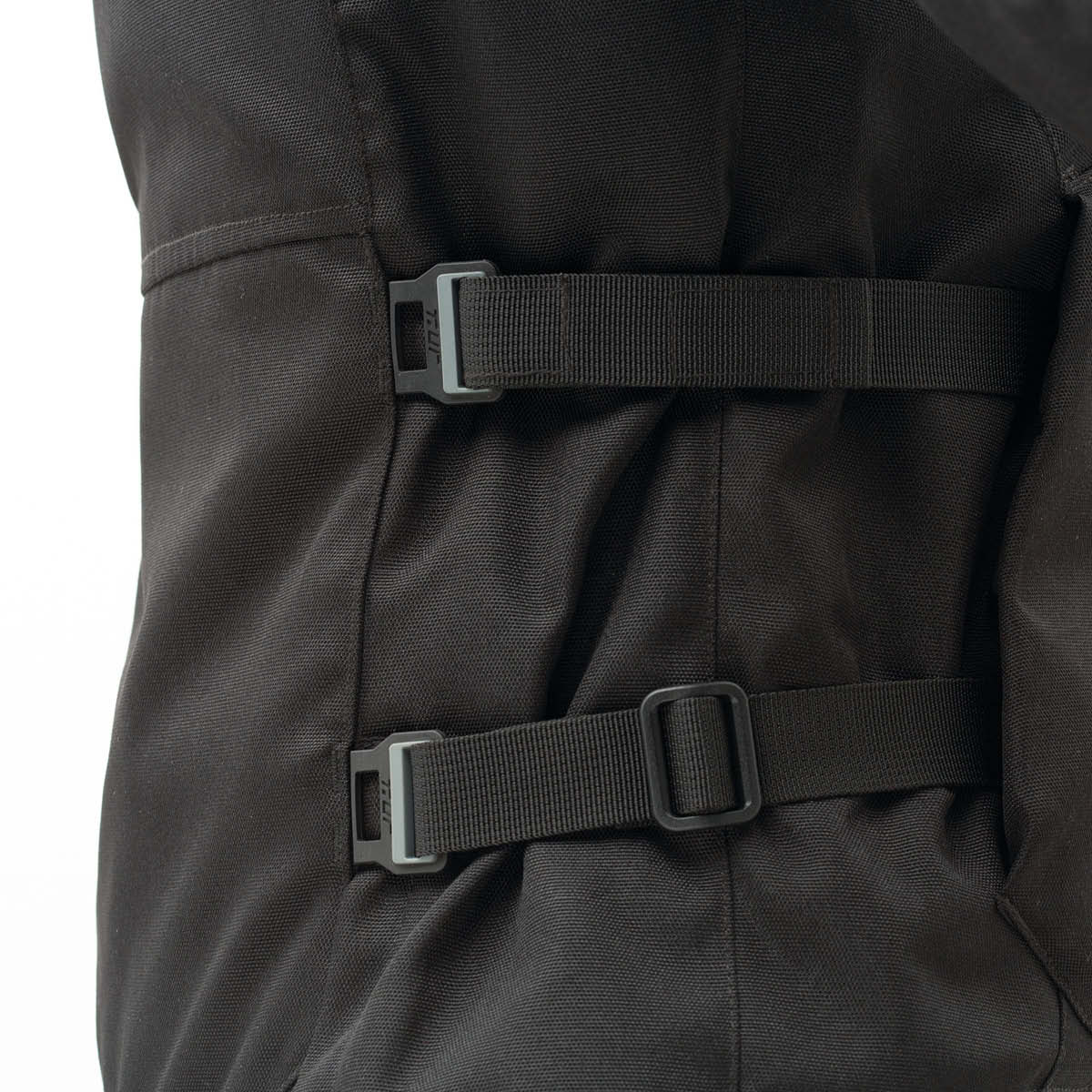 Die 2-lagige Textiljacke von T.UR ist nach EN 17092:2020 zertifiziert und gehört zur Klasse AA. Die äußere Schicht besteht aus Polystrong 600D mit Drop Safe Behandlung und hat Einsätze aus Xtr-M Netz. Die innere Schicht besteht aus einer wasserdichten und atmungsaktiven HYDROSCUD®-Membran, einer herausnehmbaren Thermowattierung und einem Innenfutter aus atmungsaktivem, perforiertem Polyester. Die Nevada Jacke verfügt über Belüftungssysteme an der Vorderseite, am Rücken und an den Ärmeln, die durch Reißverschlüsse verstellbar sind. Für Sicherheit sorgen EASYFLEX-Level-2-Protektoren an Schultern und Ellbogen, ein Befestigungssystem für einen optionalen Rückenprotektor und reflektierende Zonen für eine hohe Sichtbarkeit. Der Komfort wird durch wasserdichte Taschen, Innentaschen und Verstellmöglichkeiten an Arm, Unterarm und Unterseite gewährleistet. Die Textiljacke hat einen Kragen mit mikrometrischem Verschluss, Anti-Flatter-Haken und eine elastische Vorrichtung zur Verbindung mit einer Hose. Die Wasserdichtigkeit beträgt 10.000 mm und die Atmungsaktivität 7.000 g/m²/24h.