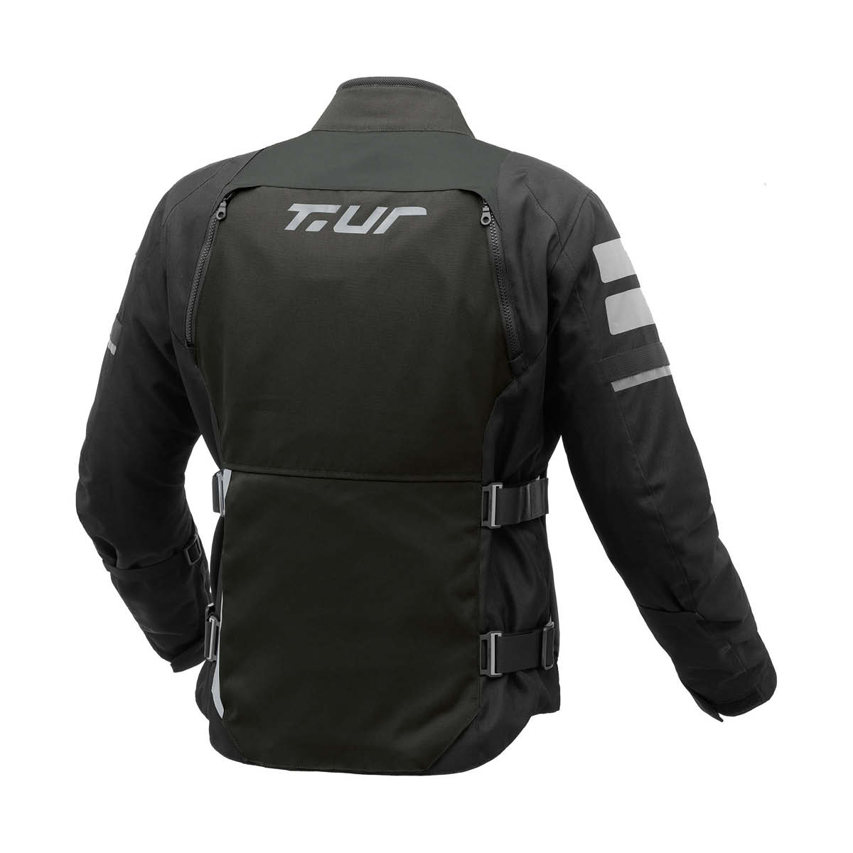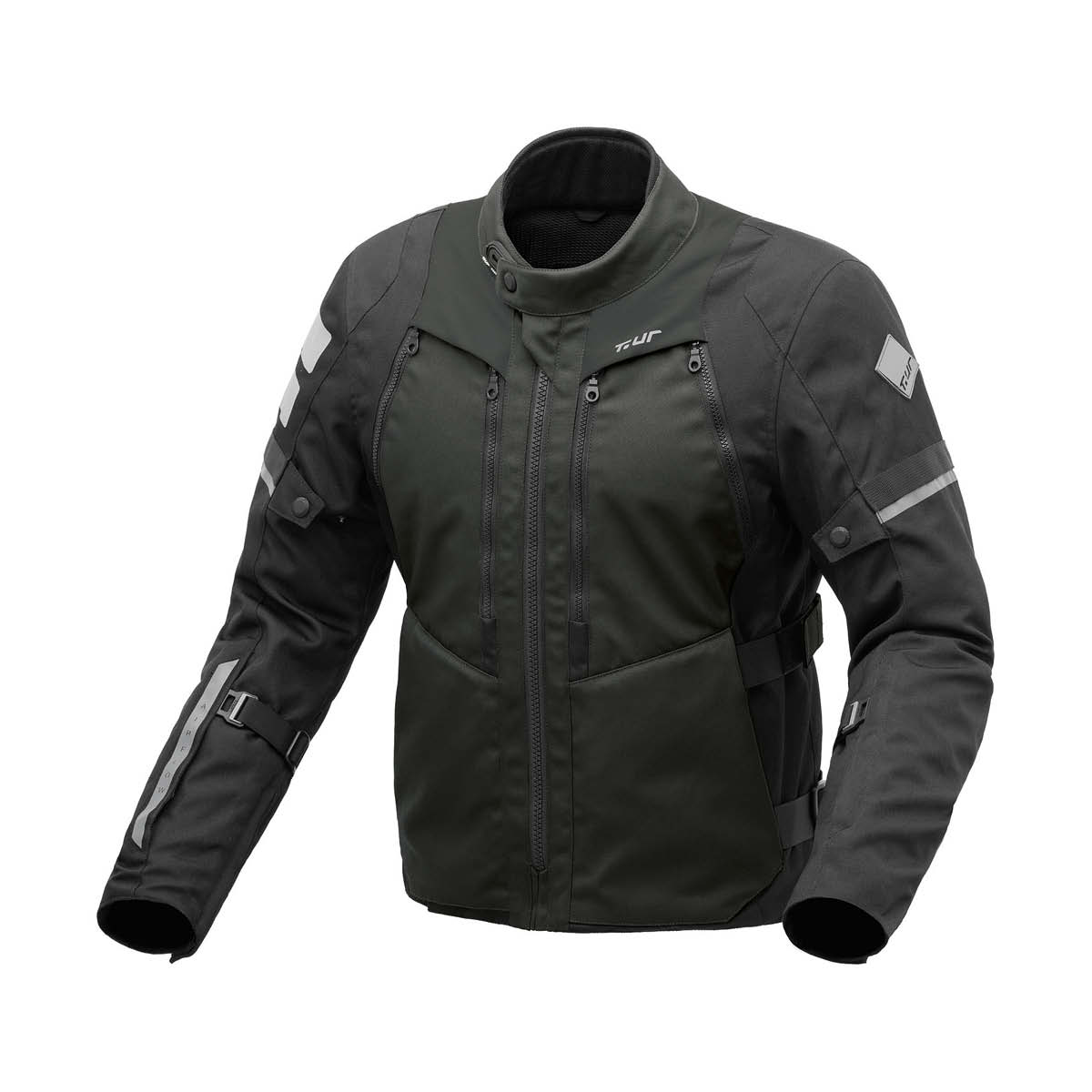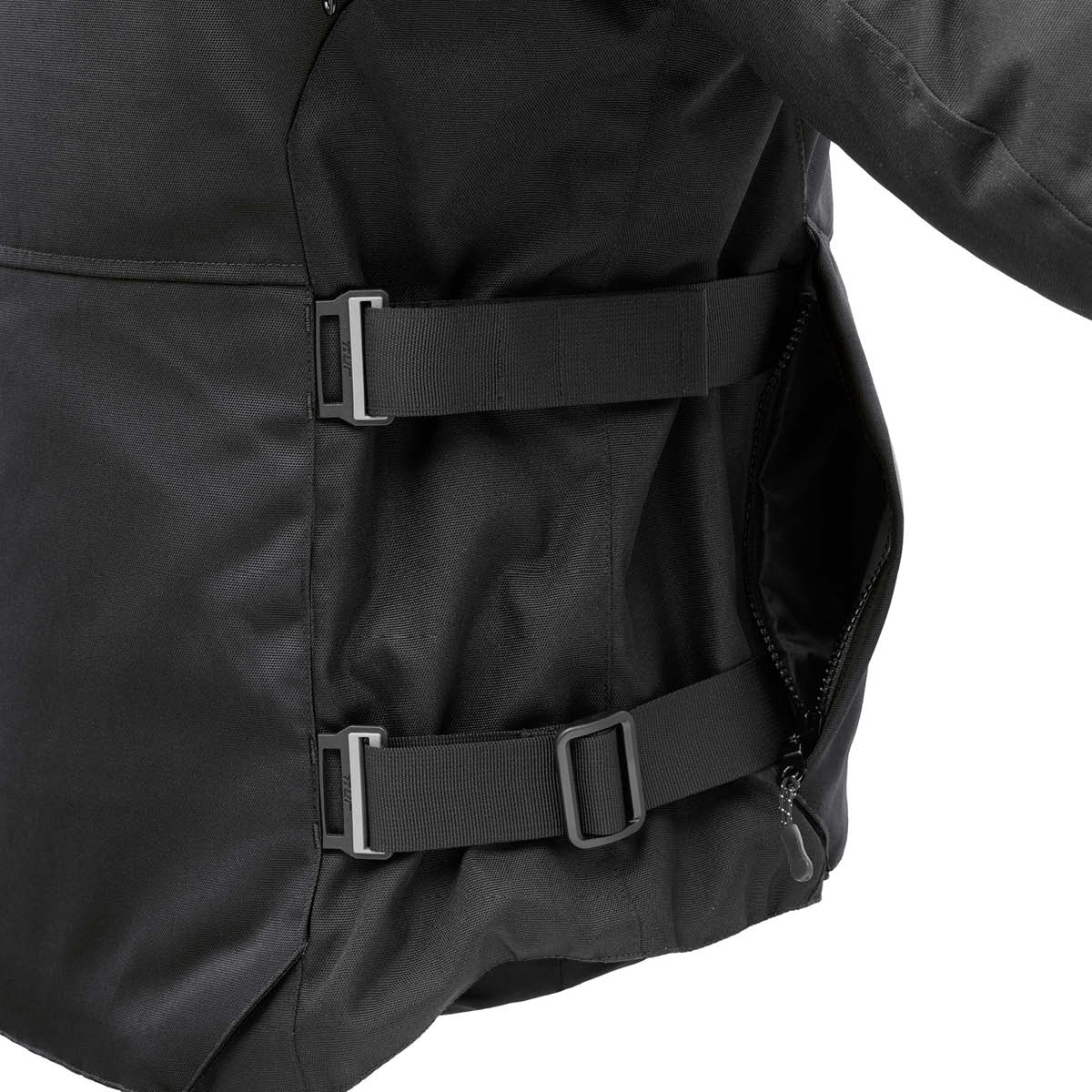Die 2-lagige Textiljacke von T.UR ist nach EN 17092:2020 zertifiziert und gehört zur Klasse AA. Die äußere Schicht besteht aus Polystrong 600D mit Drop Safe Behandlung und hat Einsätze aus Xtr-M Netz. Die innere Schicht besteht aus einer wasserdichten und atmungsaktiven HYDROSCUD®-Membran, einer herausnehmbaren Thermowattierung und einem Innenfutter aus atmungsaktivem, perforiertem Polyester. Die Nevada Jacke verfügt über Belüftungssysteme an der Vorderseite, am Rücken und an den Ärmeln, die durch Reißverschlüsse verstellbar sind. Für Sicherheit sorgen EASYFLEX-Level-2-Protektoren an Schultern und Ellbogen, ein Befestigungssystem für einen optionalen Rückenprotektor und reflektierende Zonen für eine hohe Sichtbarkeit. Der Komfort wird durch wasserdichte Taschen, Innentaschen und Verstellmöglichkeiten an Arm, Unterarm und Unterseite gewährleistet. Die Textiljacke hat einen Kragen mit mikrometrischem Verschluss, Anti-Flatter-Haken und eine elastische Vorrichtung zur Verbindung mit einer Hose. Die Wasserdichtigkeit beträgt 10.000 mm und die Atmungsaktivität 7.000 g/m²/24h.