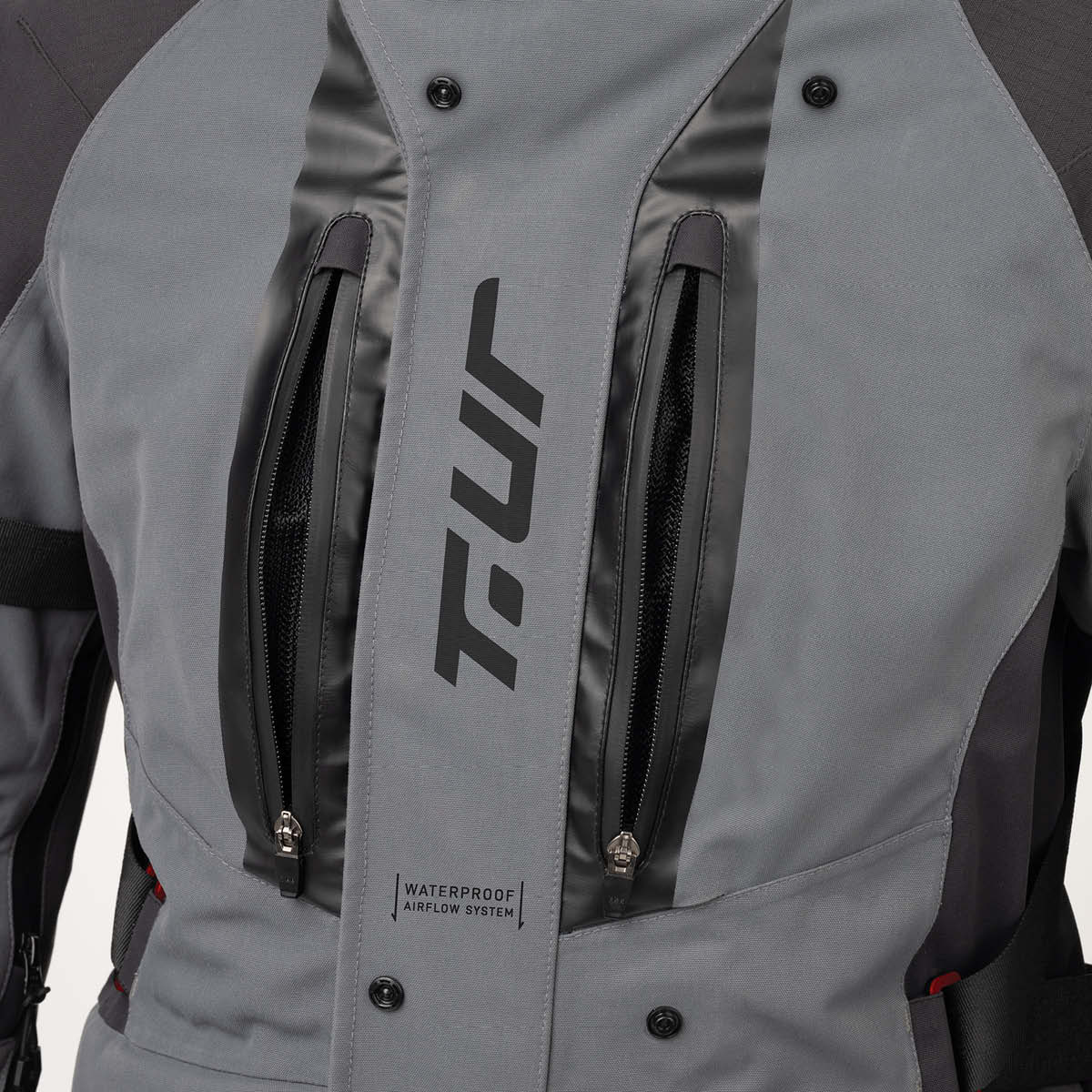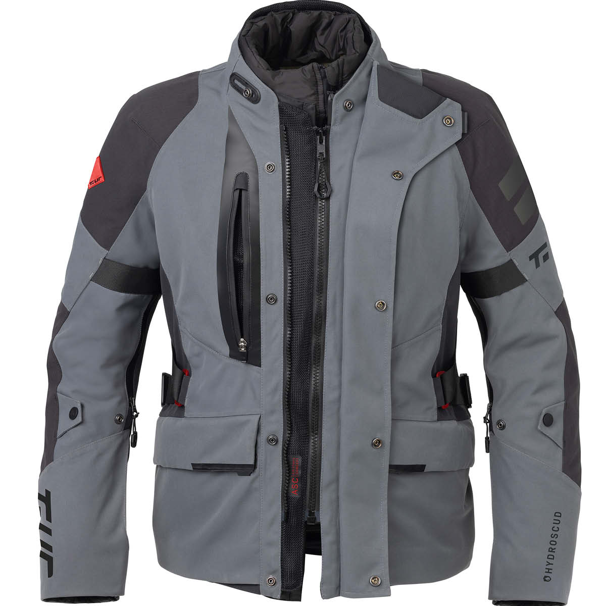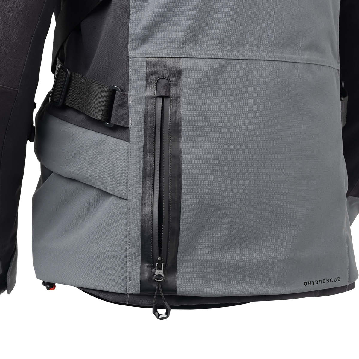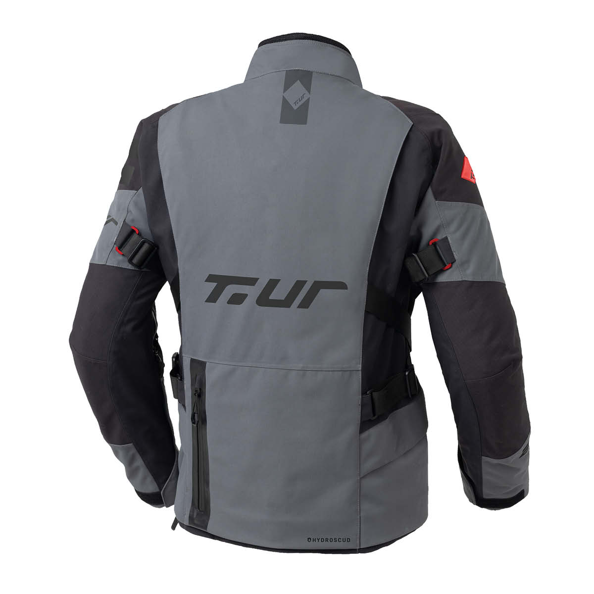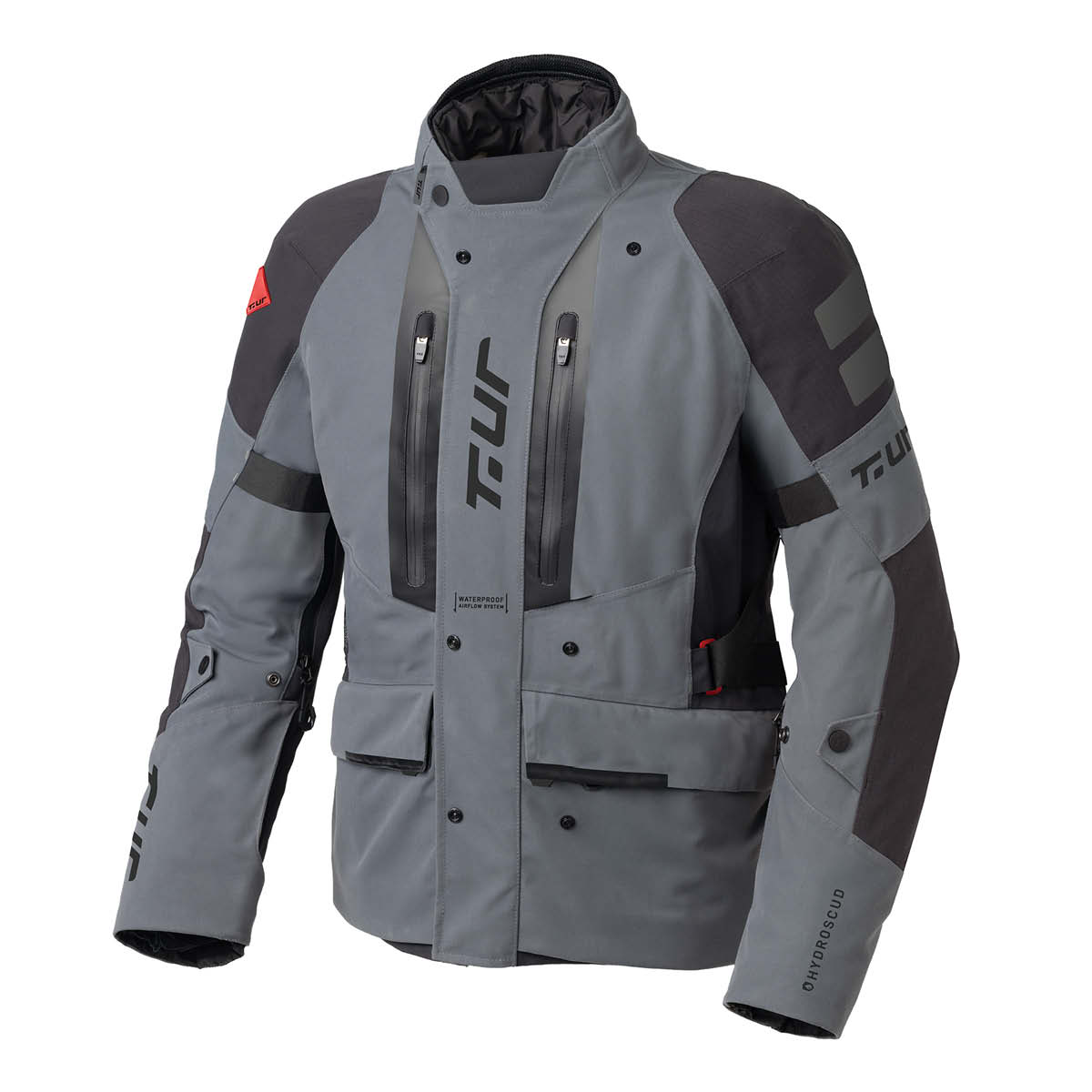 Die äußere Schicht der Jacke besteht aus wasserdichtem und atmungsaktivem Nypower 500D HYDROSCUD®-Gewebe sowie Nypower 500D Ripstop HYDROSCUD®-Gewebe. Somit handelt es sich bei der Supercell Hydroscud Textiljacke um ein 2-Lagen-Laminat. Um zusätzliche Festigkeit zu gewährleisten, werden Einsätze aus hochfestem Xtr-M Mesh verwendet und die Nähte sind thermoverschweißt. Innen hat die T.UR Textiljacke ein perforiertes und atmungsaktives festes Futter aus Polyester. Die Wattierung ist aus Nylon mit Polyester-Füllung und kann herausgenommen und als eigenständiges Kleidungsstück getragen werden. Für Belüftung sorgen verstellbare Lufteinlässe an Vorder- und Rückseite sowie an den Ärmeln. Das doppelte Verschlusssystem auf der Vorderseite gewährleistet einen guten Sitz. In Bezug auf die Sicherheit sind EASYFLEX-Level 2 Protektoren an Schultern und Ellbogen vorhanden, und es gibt die Möglichkeit, einen Rückenprotektor nachzurüsten. Die Supercell Jacke verfügt über reflektierende Zonen für eine gute Sichtbarkeit. Für Komfort sorgen wasserdichte Außentaschen, Innentaschen und verschiedene Verstellmöglichkeiten an Arm, Unterarm und Taille. Die Jacke hat einen mikrometrischen Verschluss und eine Anti-Flattern-Befestigung am Kragen und kann mit einer Hose verbunden werden. Die Jacke hat eine Wasserdichtigkeit von 10.000 mm und eine Atmungsaktivität von 10.000 g/m²/24h.