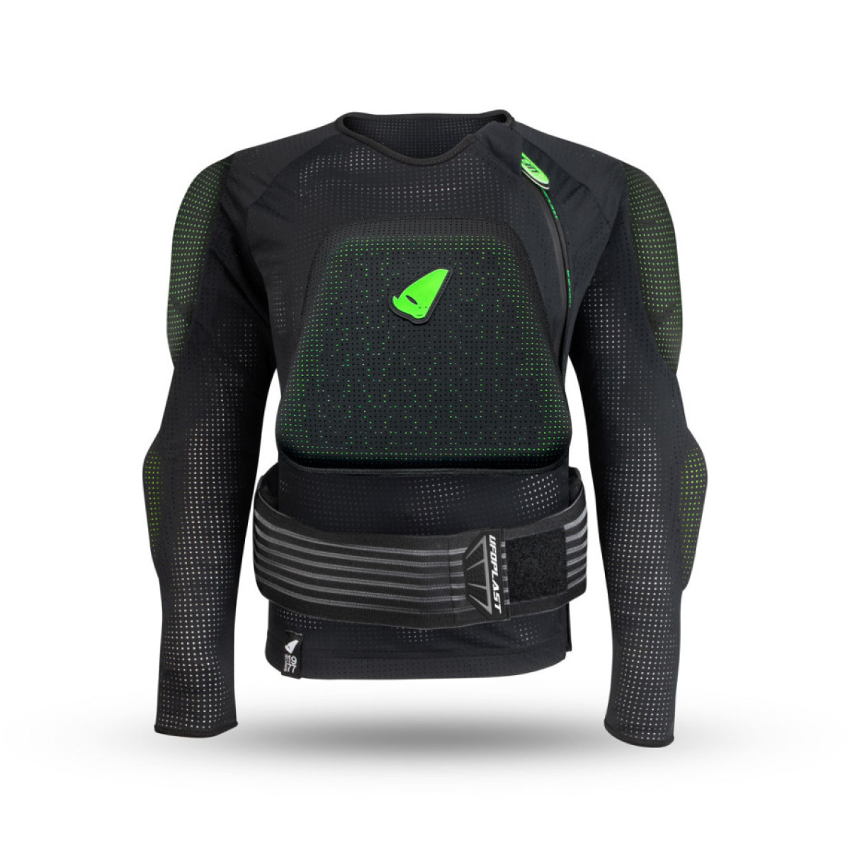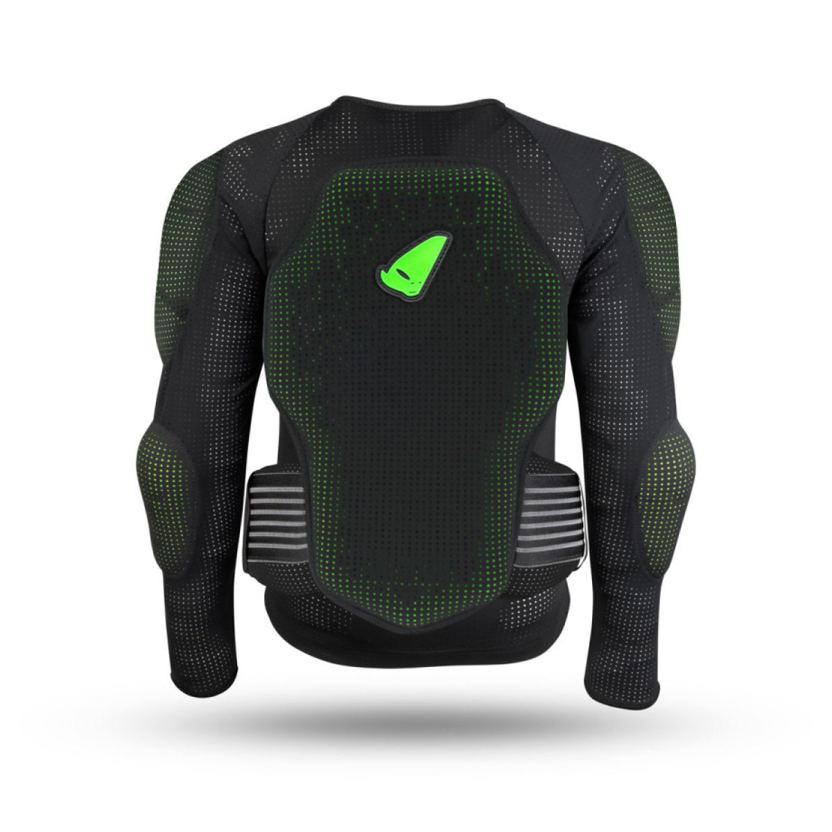 UFO Kinder Protektorenjacke CENTURION BV1 mit Brust-, Rücken-, Ellbogen- und Schulterprotektoren aus perforiertem Stretchgewebe mit außergewöhnlichen technischen und ästhetischen Eigenschaften. Sie bietet optimalen Schutz und ist vollständig aus belüfteten Materialien gefertigt. Sie ist leicht, atmungsaktiv und bequem.