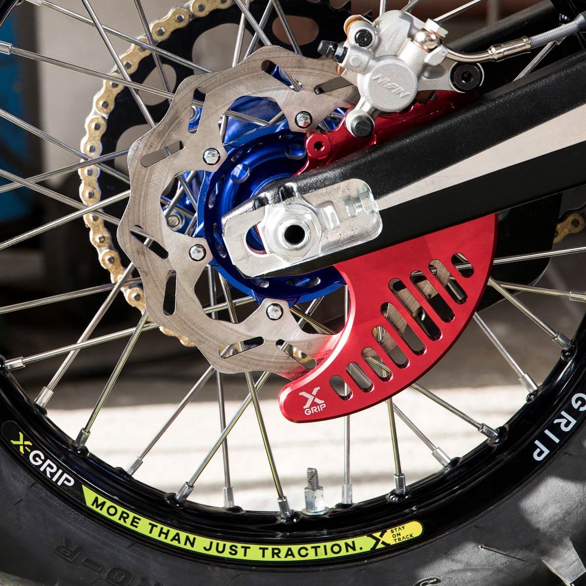 X-GRIP Bremsscheibenschutz für die hintere Bremsscheibe, aus einem Stück Aluminium gefräst. Sieht nicht einfach nur gut aus, sondern schützt die Bremsscheibe im harten Gelände vor unerwünschtem Kontakt mit Steinen oder anderen Objekten. Erhältlich in verschiedenen Farben.