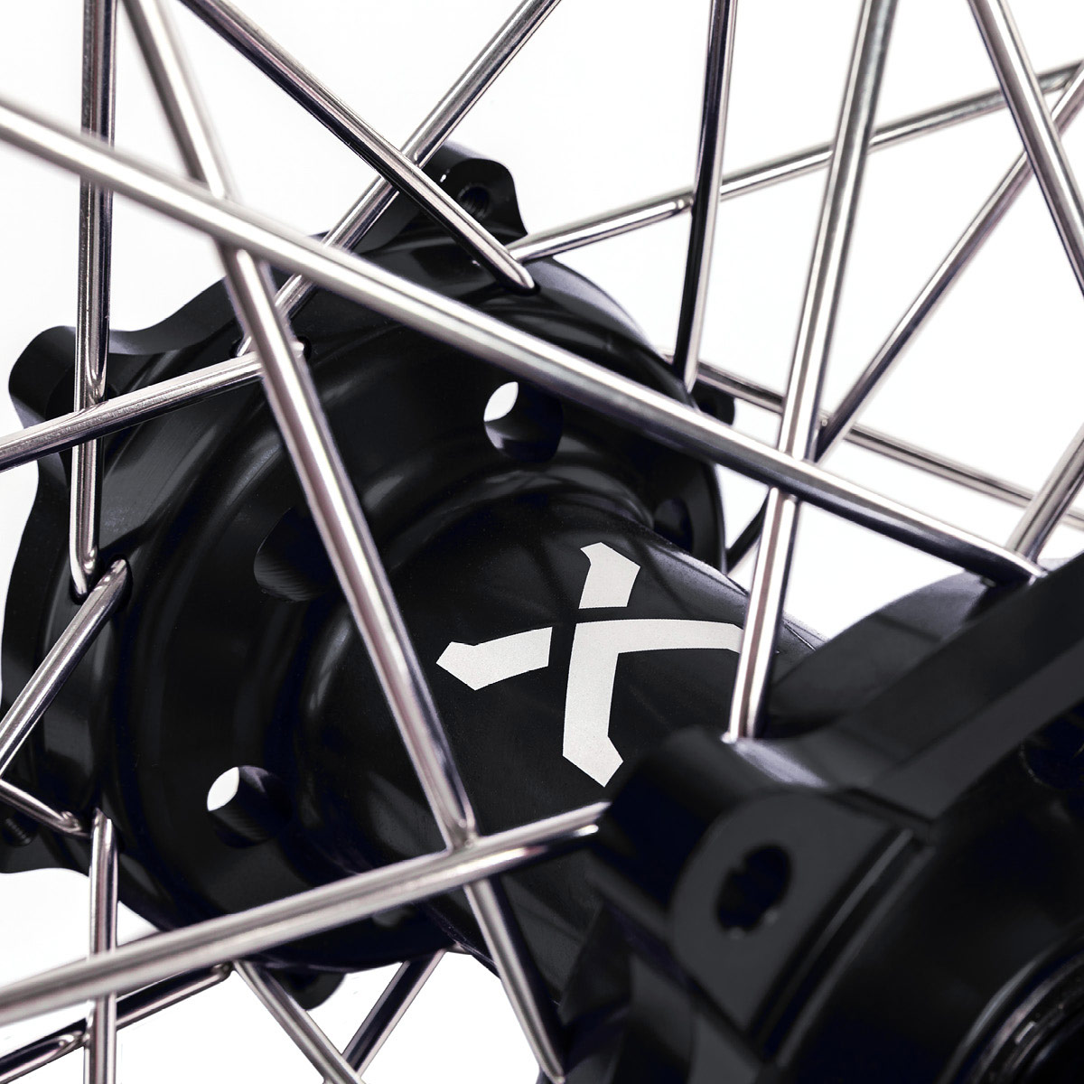 Die X-GRIP Felge ist mit extra dicken Speichen, hartanodisierten, schwarzen Felgenringen und Rad- Distanzhülsen ausgestattet, dies sorgt für massive Strapazierfähigkeit. Auf X-GRIP Felgen passen nur KTM, GASGAS oder HUSQVARNA Zahnkränze und Bremsscheiben. All unsere Felgen werden standardmäßig mit KTM (HQV, GASGAS) Raddistanzen ausgeliefert. Für SHERCO, BETA, KTM XC+XCF, HUSQVARNA TX+FX und GASGAS EX(F) Modellen müssen die jeweiligen Buchsen extra bestellt werden.