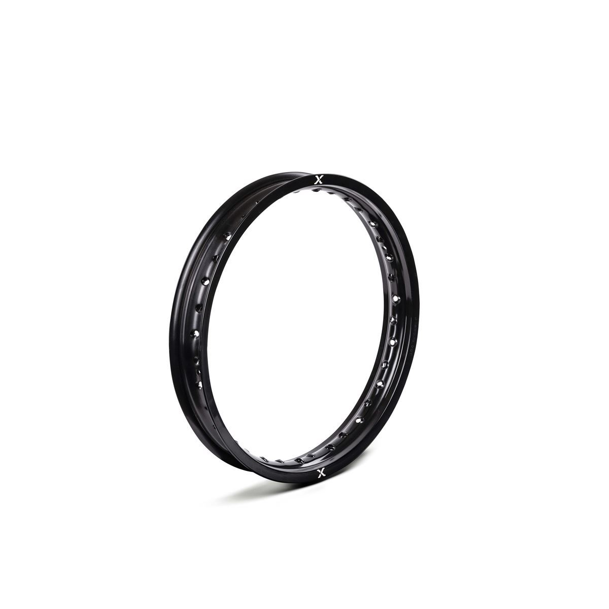 X-GRIP Felgenring aus hart anodisiertem, schwarzem 7050-Aluminium. Mit gegenüberliegenden Bohrungen für zwei Reifenhalter (wenn nötig).