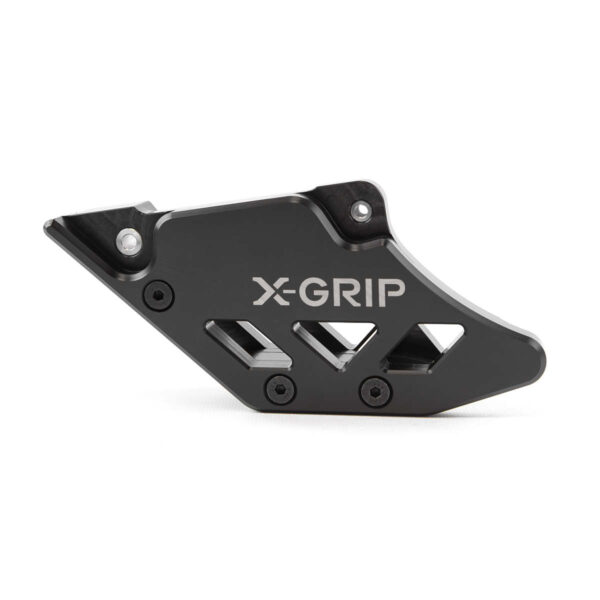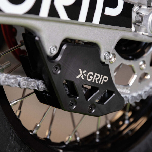 Die verstärkte X-GRIP Kettenführung besteht aus zwei CNC gefrästen, verschraubten Kunststoffblöcken. Durch das spezielle Material und die Konstruktion wird ein Durchbiegen der Kettenführung vermieden. Kann in Kombination mit Schwingenschutz (XG-1869, XG-1870, XG-1871, XG-1872) montiert werden.