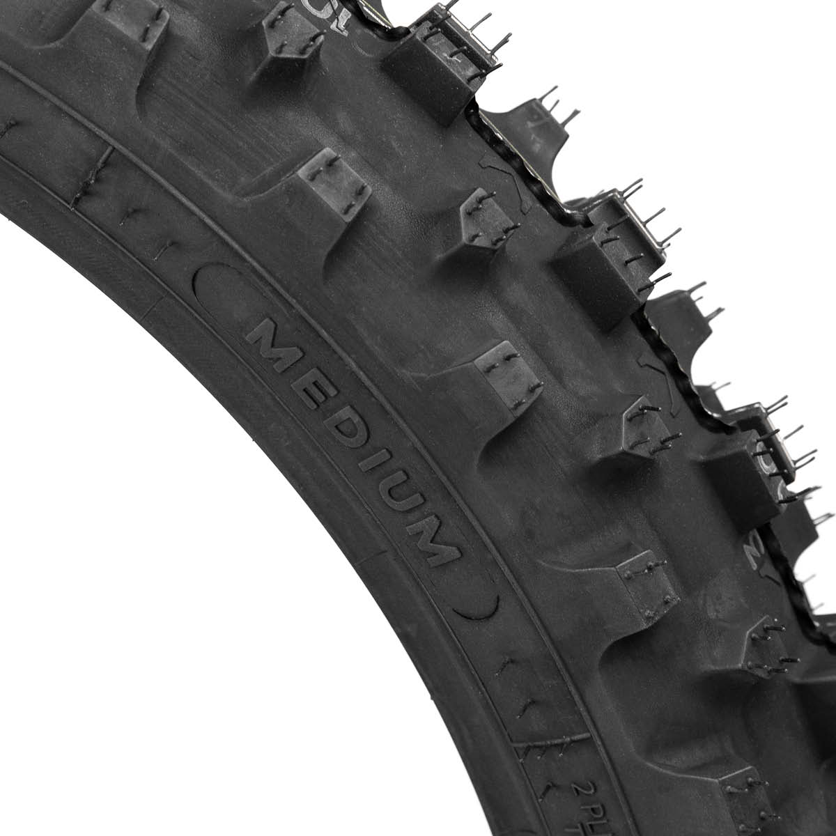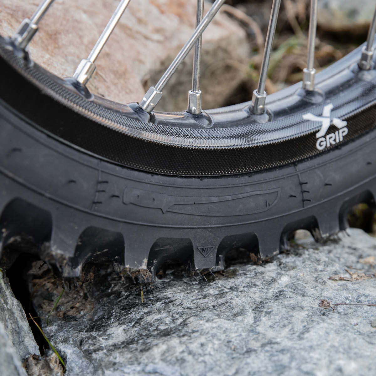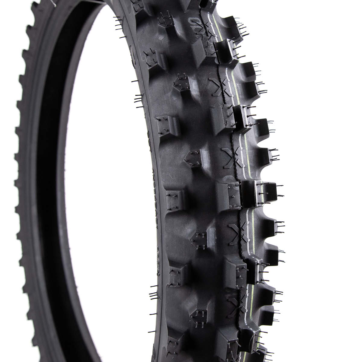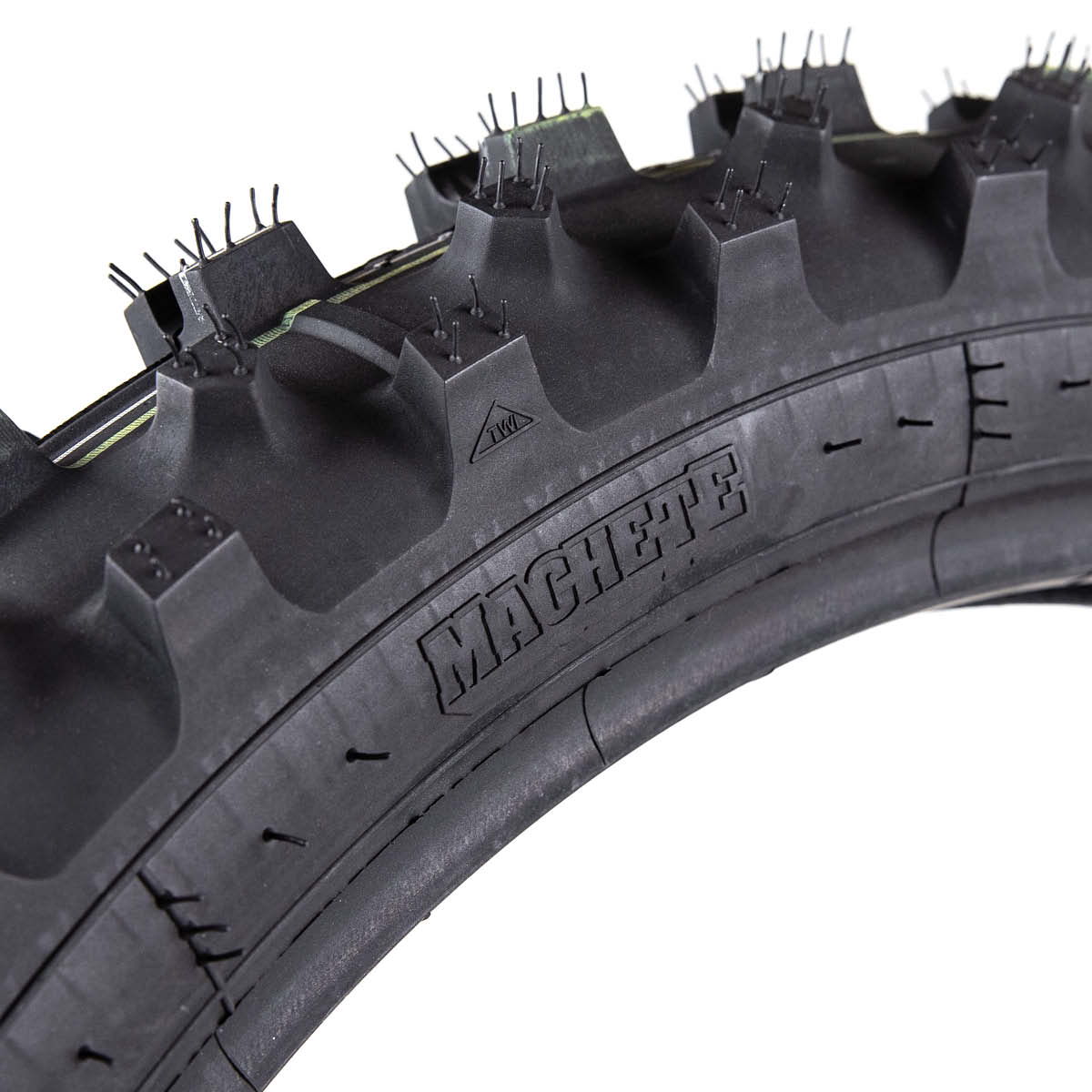 Der X-GRIP Vorderreifen “MACHETE“ ist die Waffe der Wahl, wenn es um herausforderndes Terrain geht. Der Reifen schneidet sich förmlich in den Boden, ähnlich einer Machete, die sich durch den dichten Dschungel bahnt. Dies liegt an den länglichen Stollen, die sich buchstäblich in den Boden schneiden und für maximale Spurtreue und Stabilität sorgen. Die aggressiven Stollen greifen in den Untergrund, während die größeren Zwischenräume einen hohen Negativanteil aufweisen – perfekt für eine herausragende Selbstreinigung auf schlammigem Terrain.