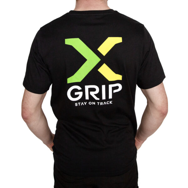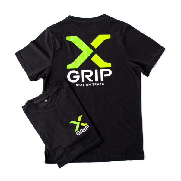 Stylisches X-GRIP T-Shirt, schwarz mit Logo-Druck auf Brust & Rücken.
