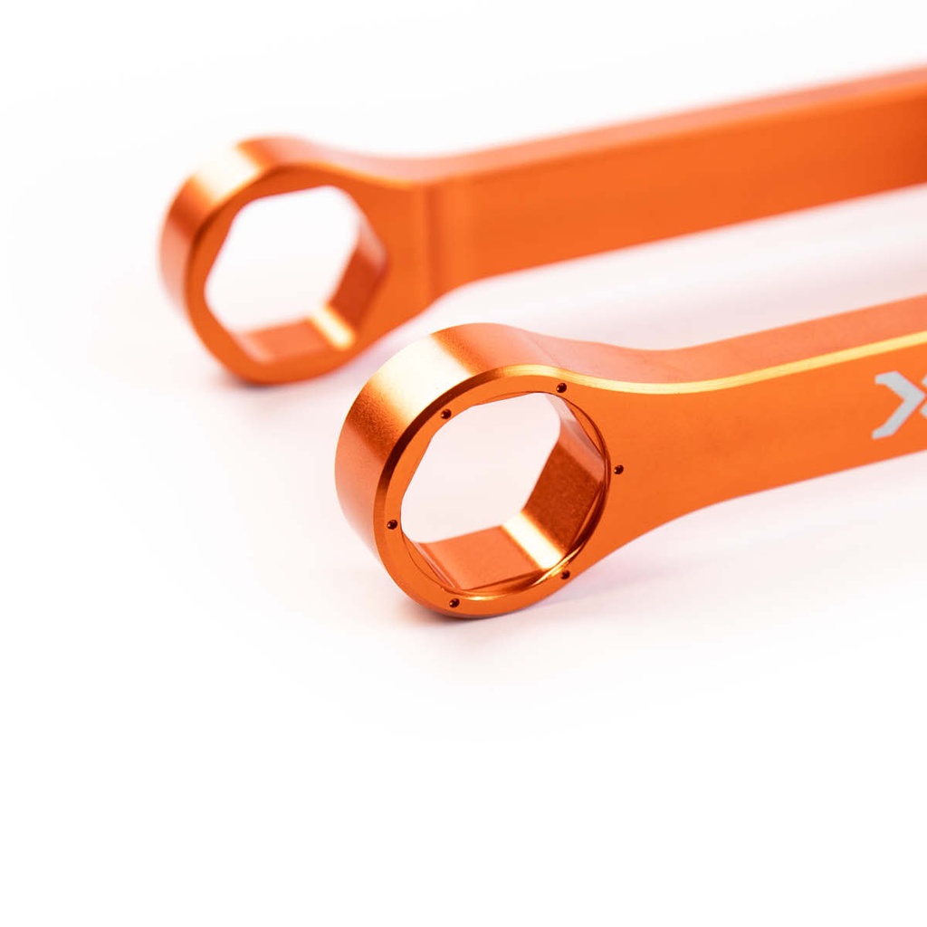 Die X-GRIP Umlenkung gibt dir die ultimative Kontrolle über dein Fahrwerk. Gefertigt aus hochfestem 7075-T6 Aluminium, CNC-gefräst und eloxiert, sorgt sie für maximale Stabilität und Präzision. Mit dem integrierten FLIP CHIP lässt sich die Geometrie kinderleicht in drei Stufen verstellen. Zusätzlich zur Originalhöhe kann also die Hinterbauhöhe um -12,5 mm oder -25 mm verändert werden. So kannst du dein Bike perfekt an die unterschiedlichsten Bedingungen anpassen. Die Höhe wird dabei wie beim Negativfederweg von der Hinterachse senkrecht zum Kotflügel gemessen. Die passgenauen Sechskant-Einsätze mit exzentrischer Bohrung ermöglichen eine einfache und exakte Einstellung. Für eine längere Lebensdauer ist die Umlenkung mit einem abgedichteten Nadellager ausgestattet. Erlebe mehr Performance und Langlebigkeit – mit der X-GRIP Umlenkung für dein Fahrwerk!