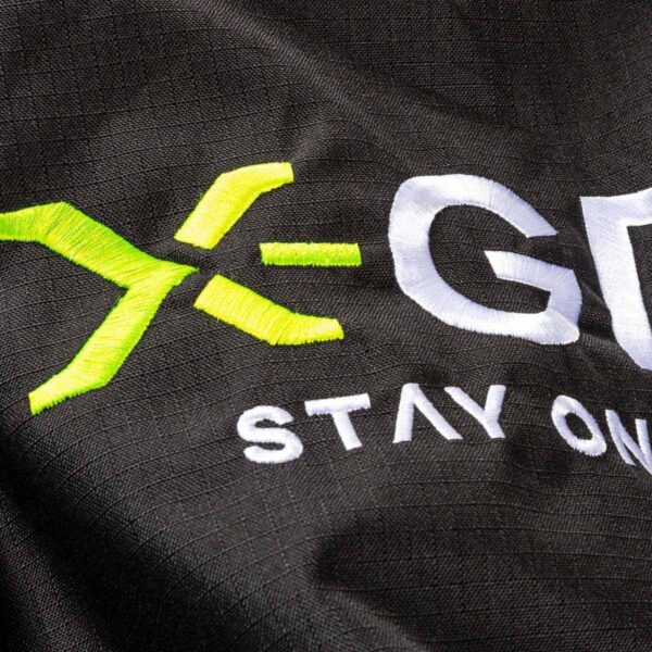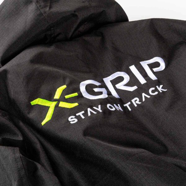 X-GRIP Winterjacke mit gesticktem Logo auf Brust, Schulter und Rücken.