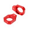 ZETA Radachsbefestigung aus CNC gefrästem A6061-T6 Aluminium. Farbig eloxiert, vermindert Belastung auf Radmutter und ermöglicht optimale Justierung der Achse. Für das einfache einstellen befindet sich auf beiden Seiten der Radachsbefestigung eine Skala.